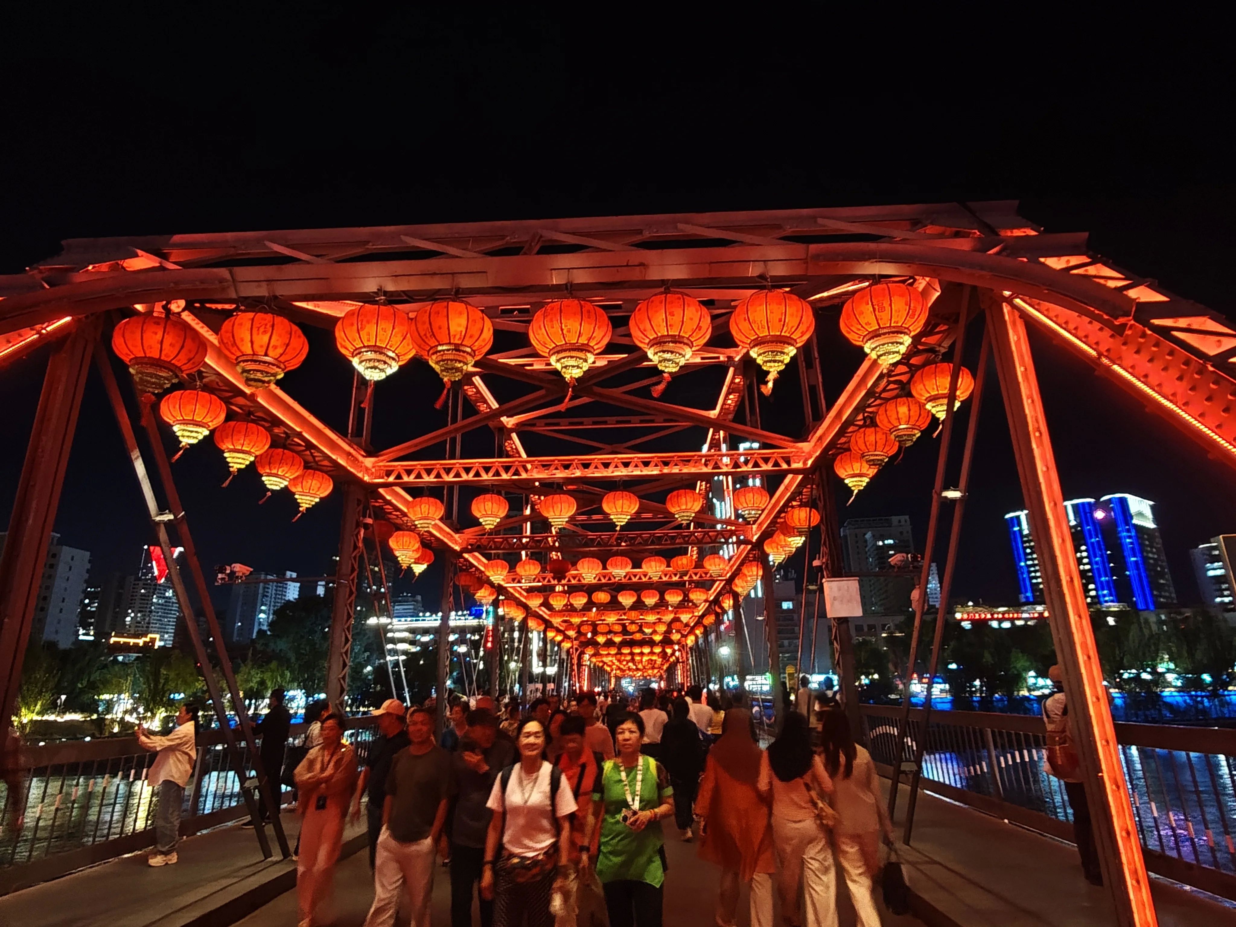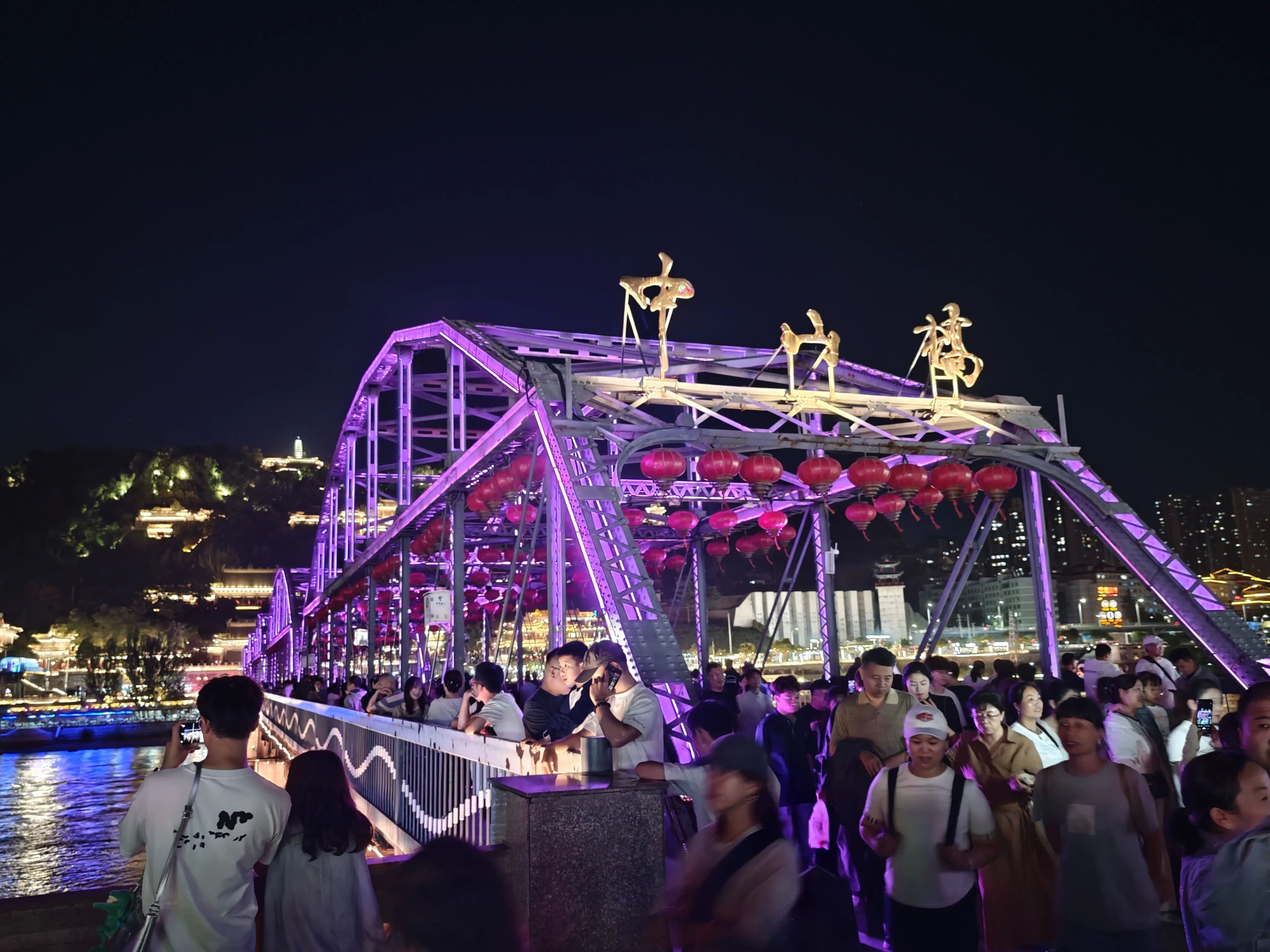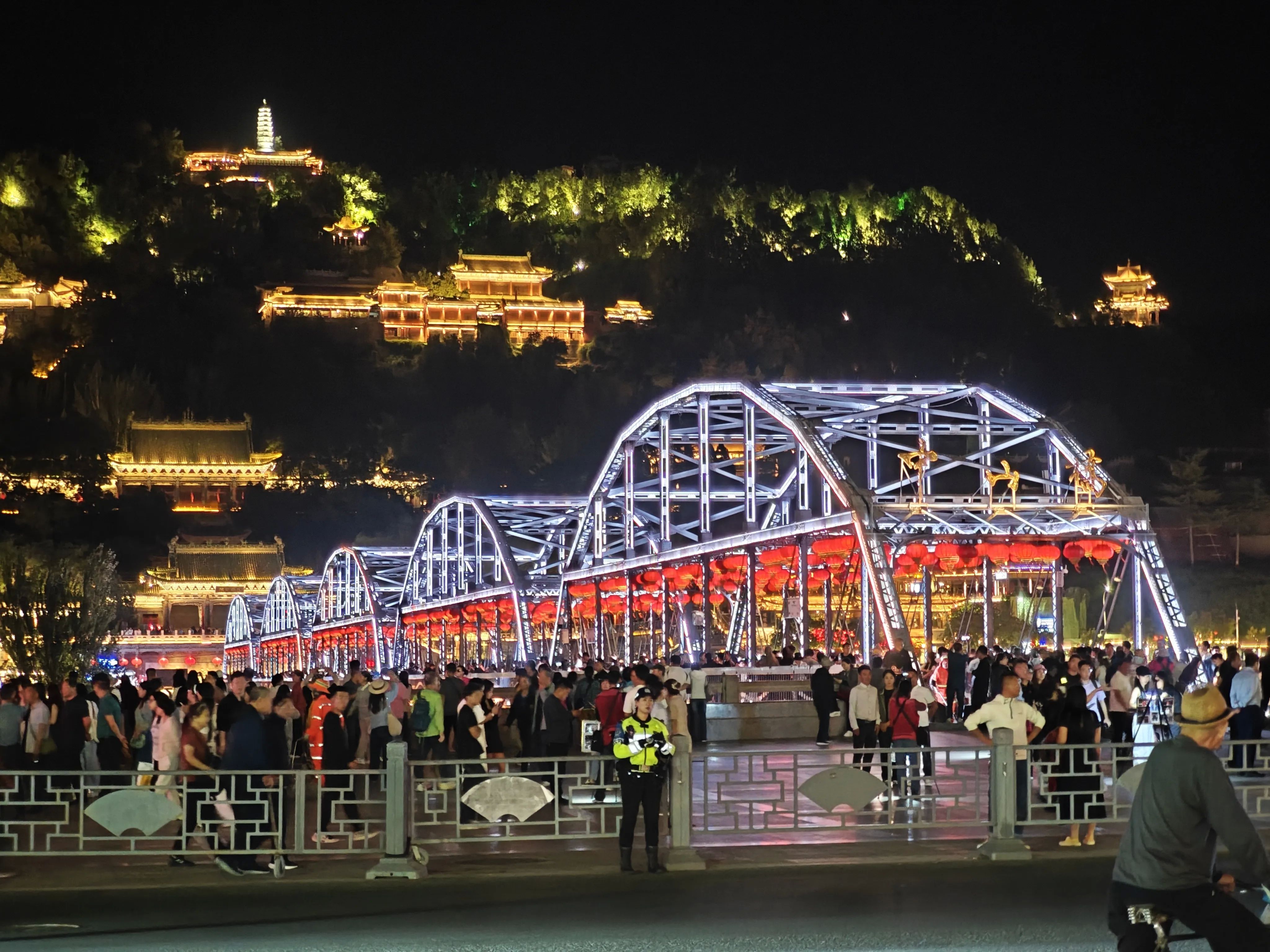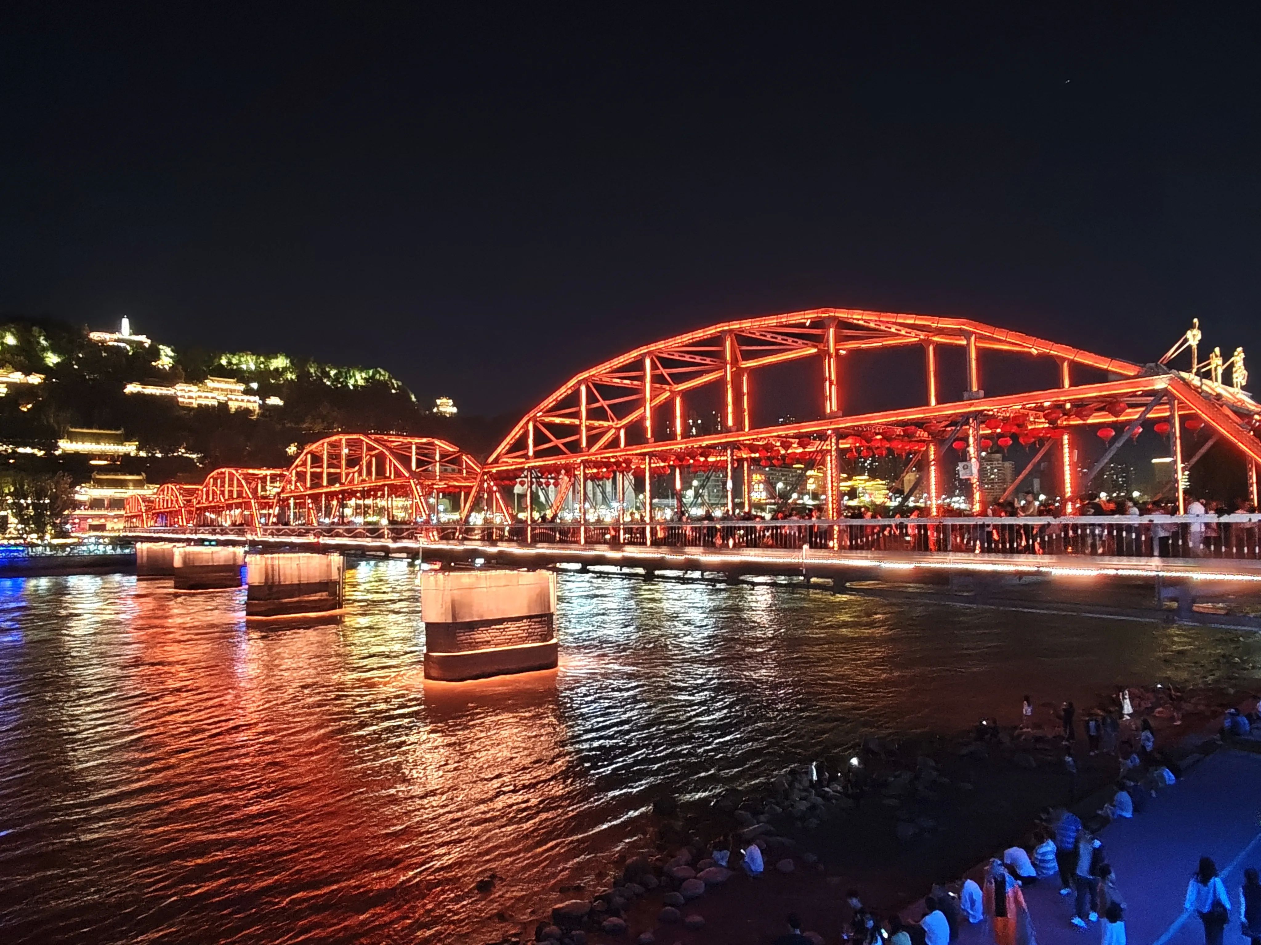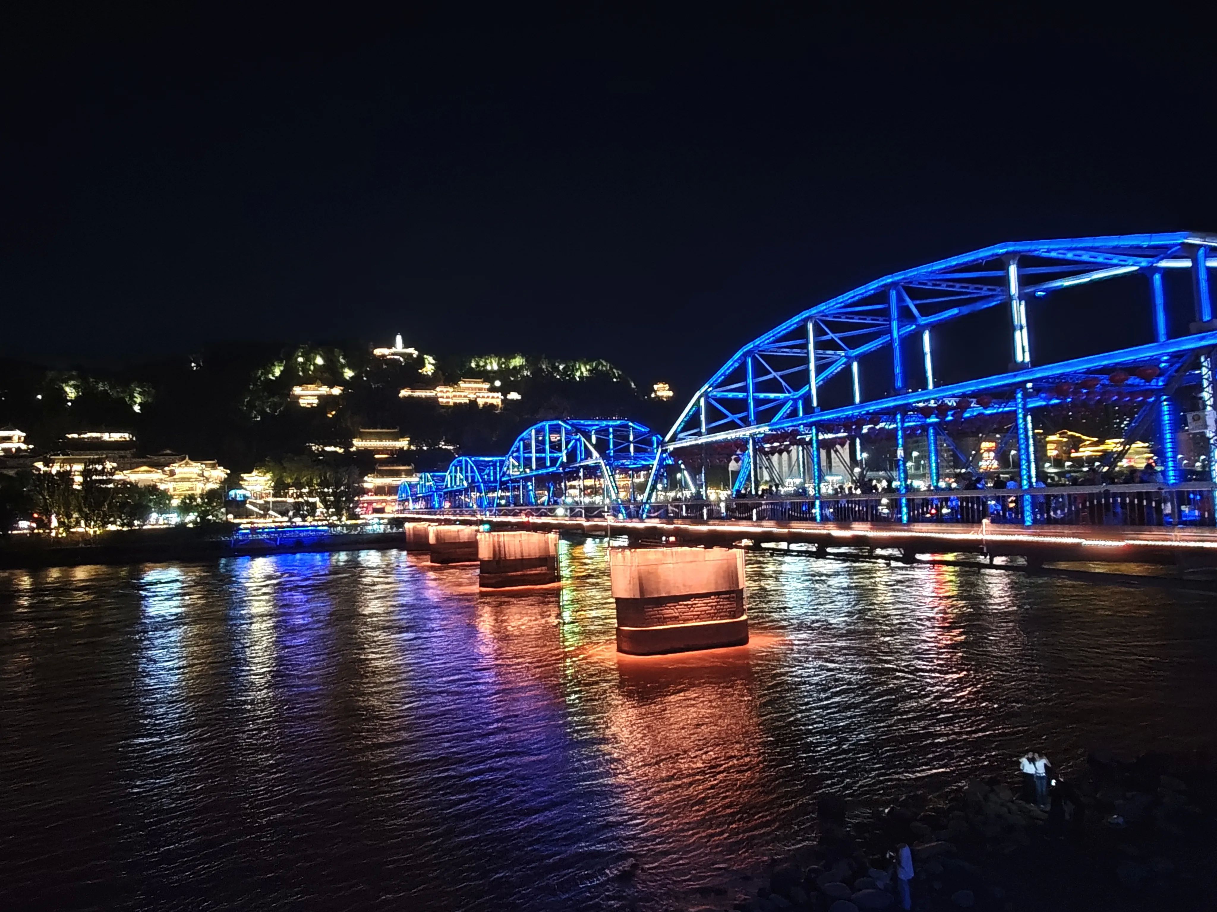 饭后消食,我们去了最想见的中山桥,夜的黑掩不住中山桥的魅影,古老的桥身在霓虹映衬下,“黄河第一桥”风光依旧。背后的白塔山公园像梦幻中的仙境,在西北的黄河之畔,我看到了魔都的时尚和阳春白雪。