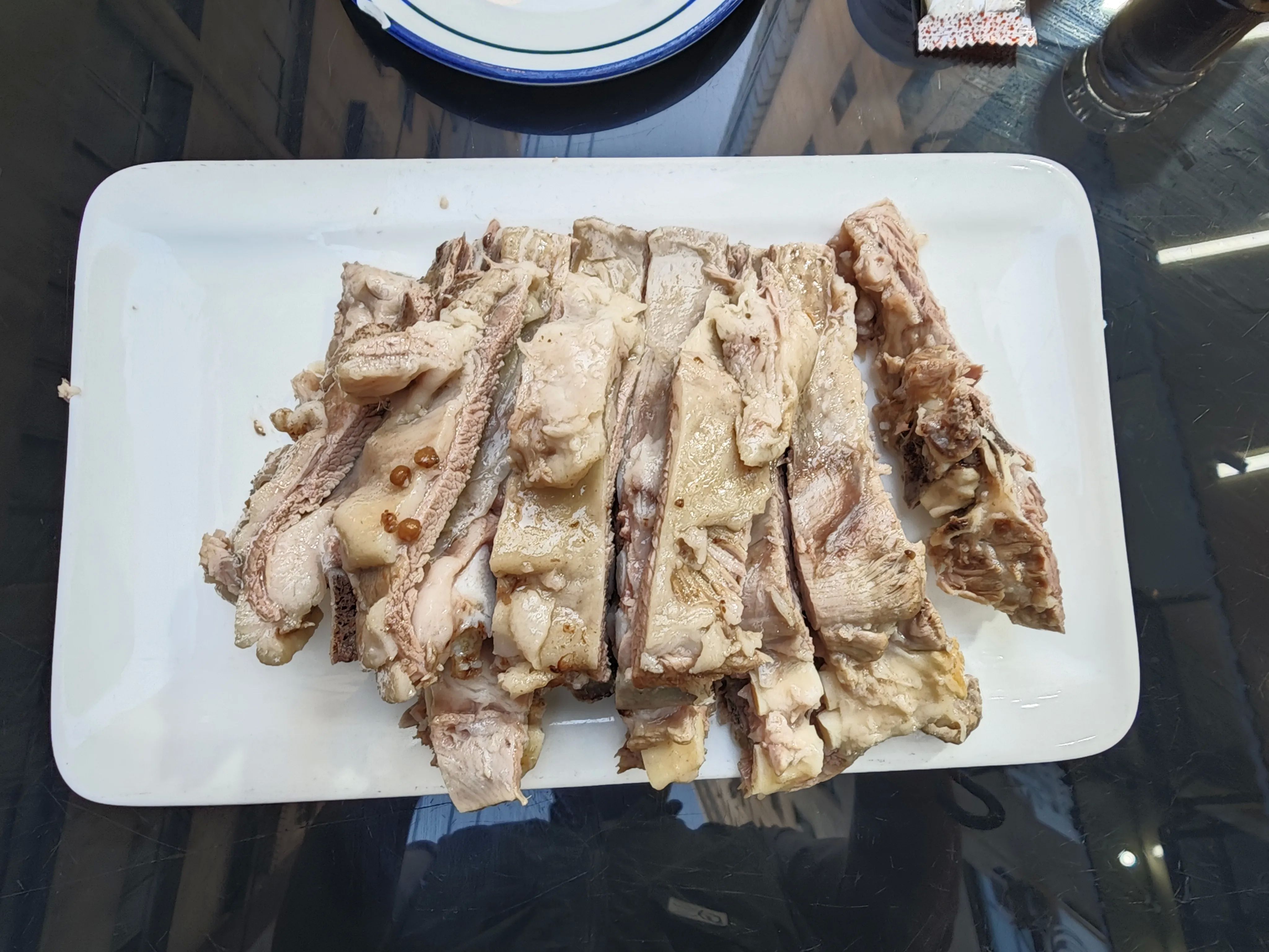 我们学着别人的样,点了一大盘手抓羊排,撒上椒盐辣椒,大口朵颐。别说,不吃羊肉的我,也被这美味吸引。羊排软糯鲜香,入口即化,没有一点羊膻味,非常好吃。
