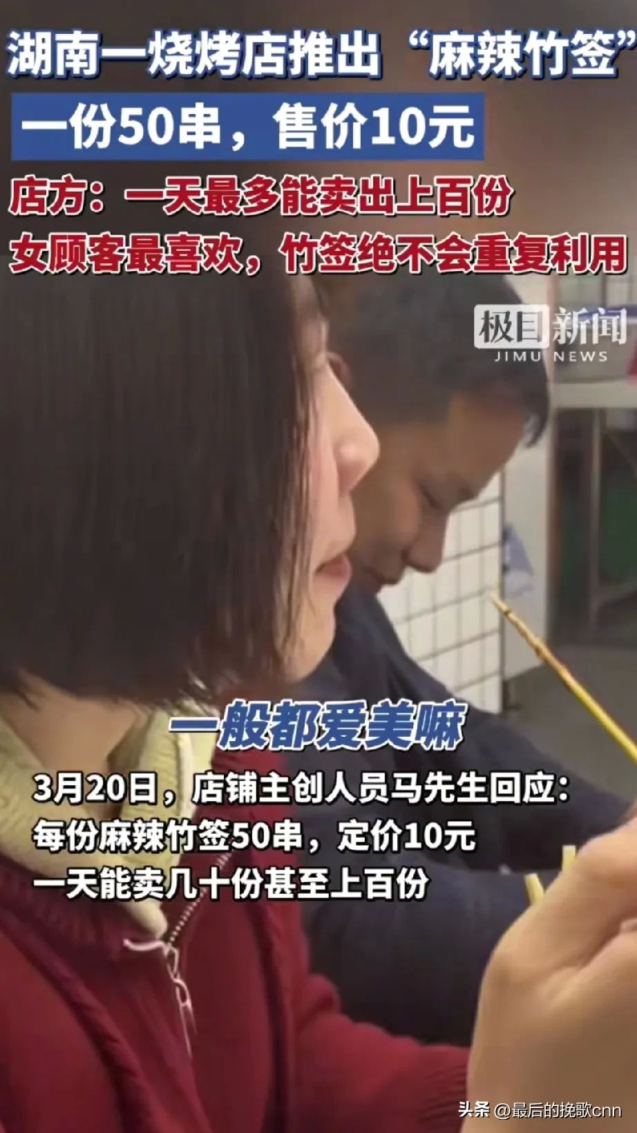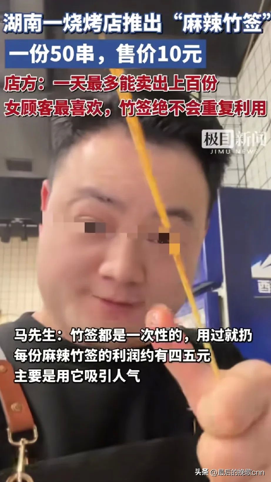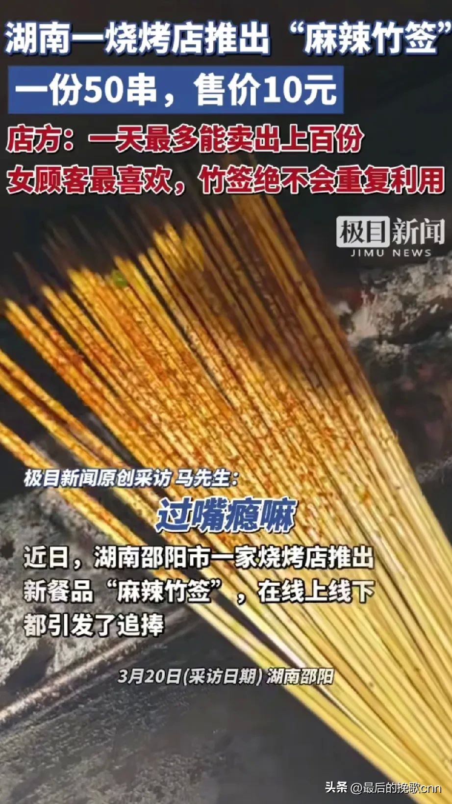 是我疯了还是这个世界疯了!湖南邵阳一家烧烤店推出了一份新菜品麻辣竹签