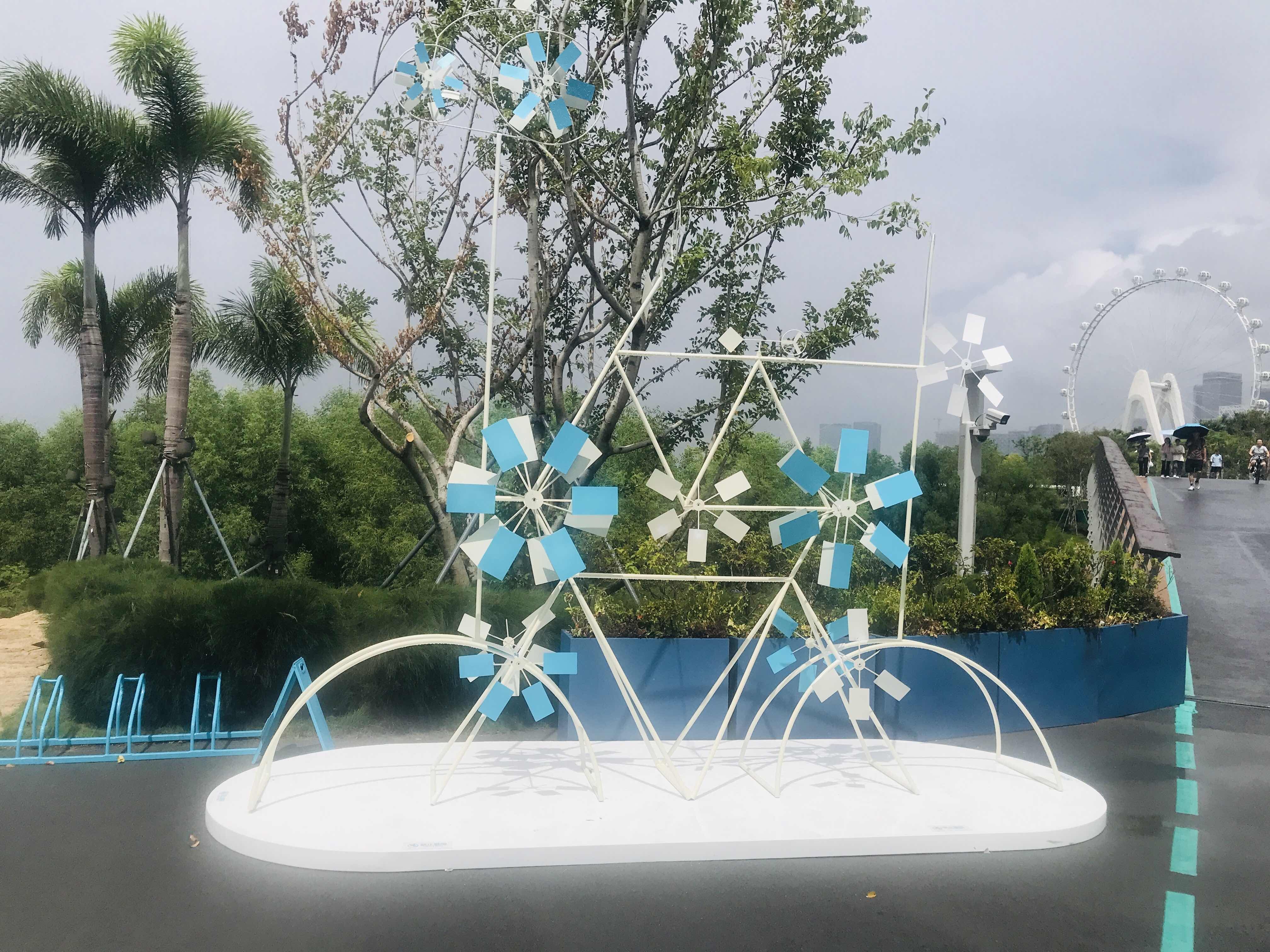 曲折的海岸线,简洁明快的海上建造物,状如树叶,随地可见的木凉椅,长堤,随时可以坐下来,远眺海湾,微风拂面,那是一种逃离了城市森林的自由自在感。