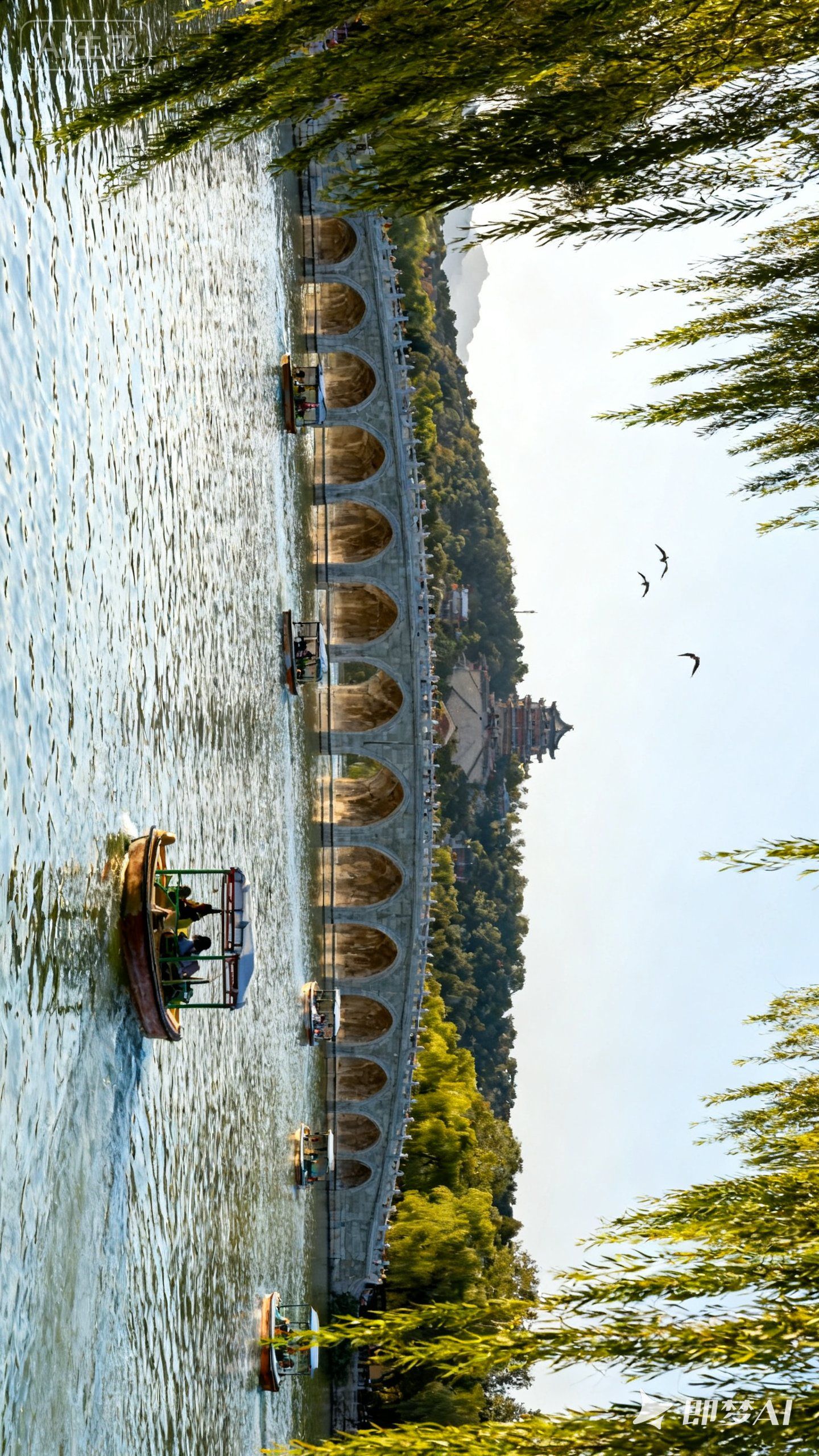 北海公园:湖景和古建筑美丽。