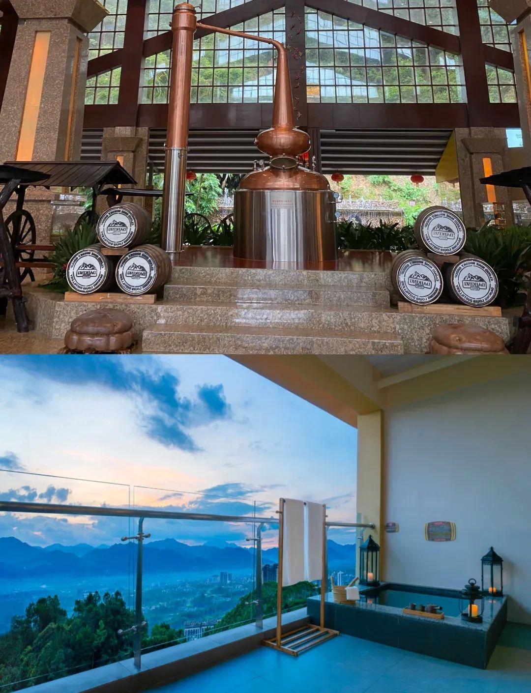 **72℃"美人汤"**:72℃天然硅酸氟温泉,泡完皮肤滑到反光!重点在【半山红酒池】和【星空牛奶池】,晚上9点后人少景美,随手拍出杂志大片