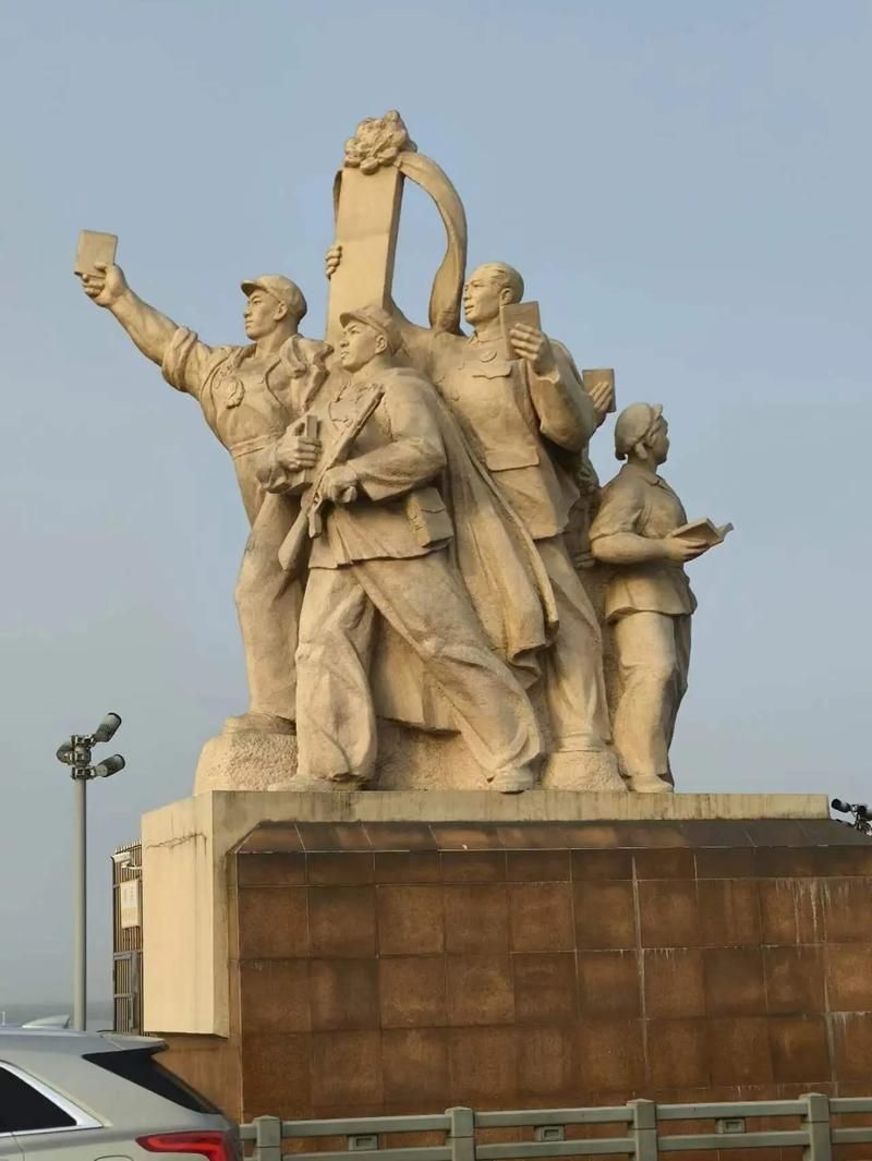 2、“三面红旗”桥头堡:大桥南北端的桥头堡上有“三面红旗”雕像,是南京的地标之一,逆光拍摄工业感十足。若南堡公园电梯开放,可登顶观景台俯瞰长江与城市天际线。