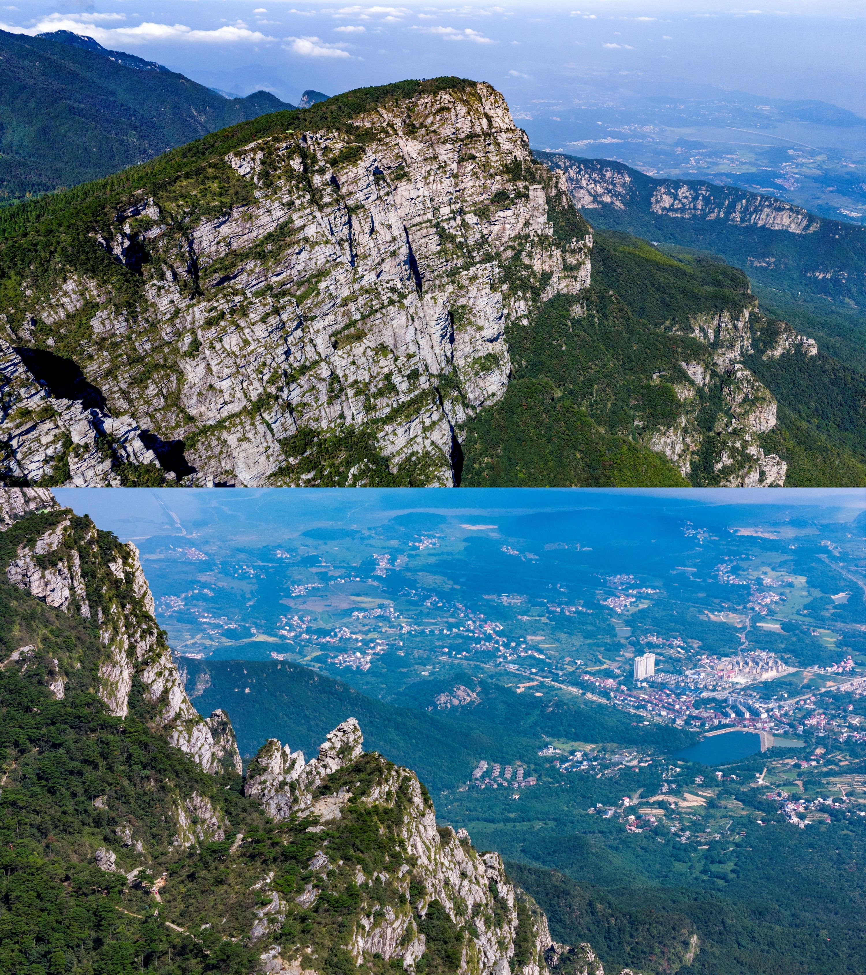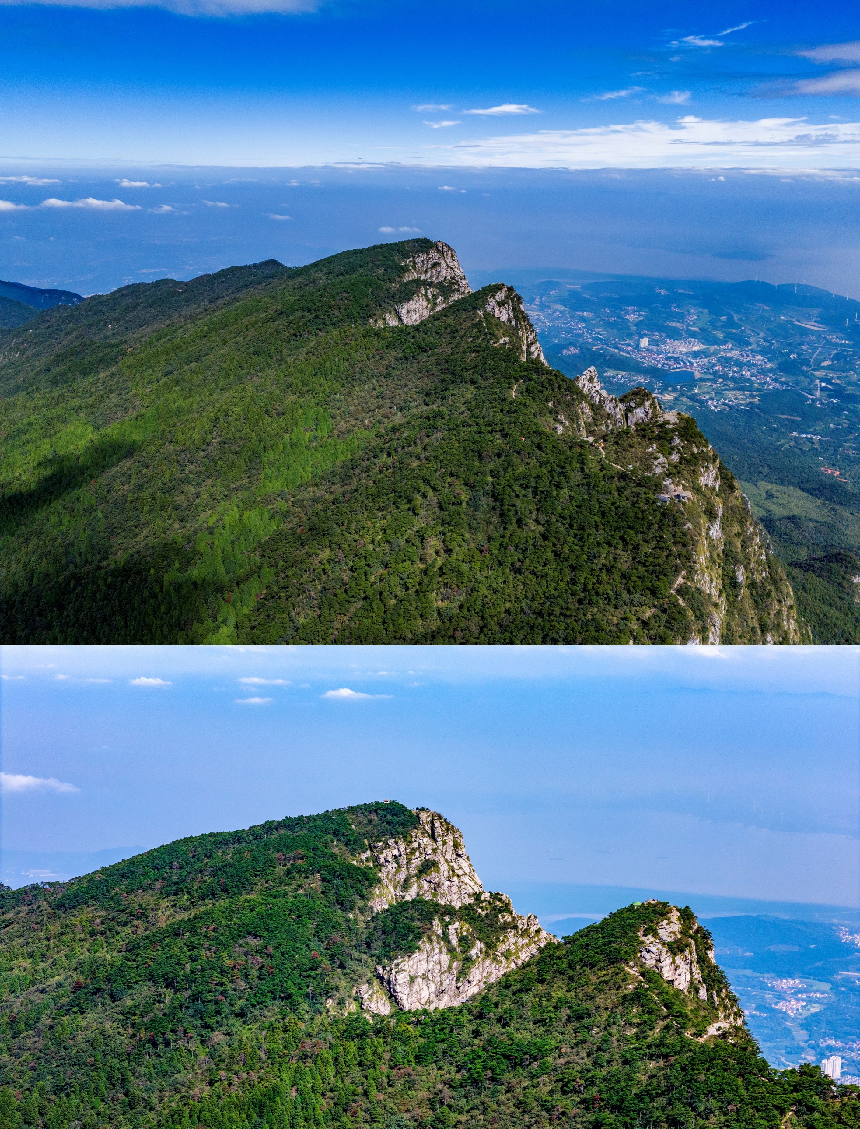 岭上的含鄱亭、望鄱亭等建筑隐现林间