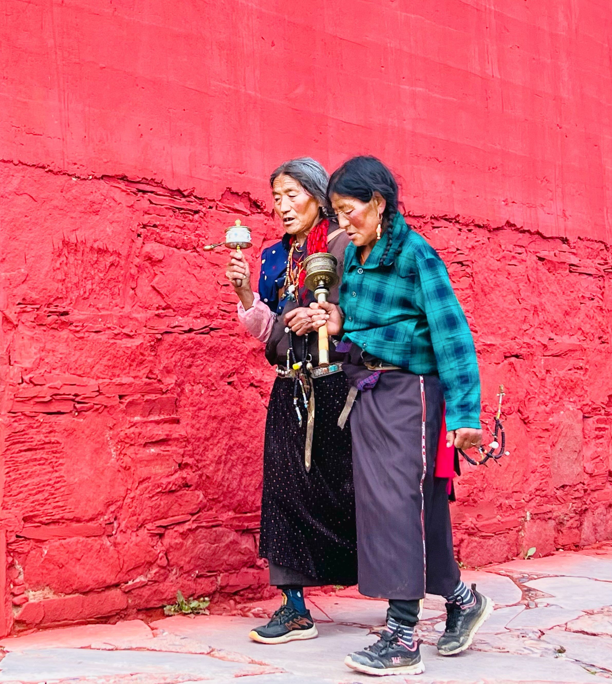 郎木寺不是一座寺院,而是坐落于甘肃省甘南藏族自治州碌曲县的风情小镇。熙熙攘攘的人群、挂满招牌的商铺、招揽生意的商贩与寺庙中诵经礼佛的身披红色袈裟的僧众和那些脚步沉稳,沿着赛赤寺、格尔底寺周边的山路绕行,口中默念经文的信徒们完美融入,那么自然,那么恬静,那么和谐,那么原汁原味。静谧是圣洁中的静谧,精致是苍凉中的精致,和谐是天地人神之间的和谐。