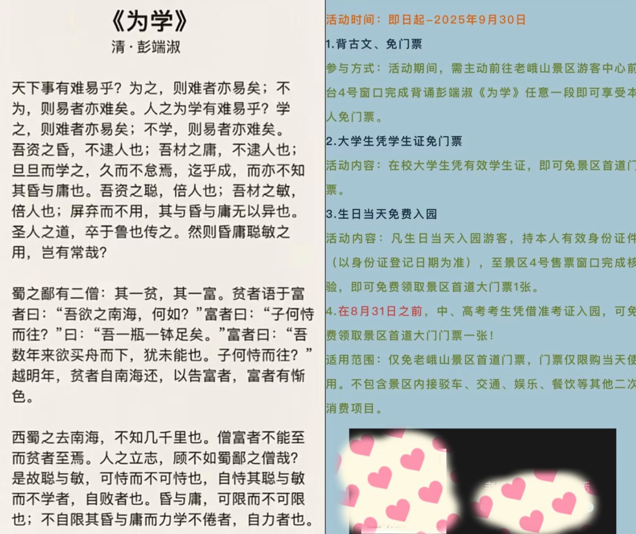 免票:截止25年9月30日,在游客中心4号窗口背诵《为学》任意一小段,可免门票(图17)