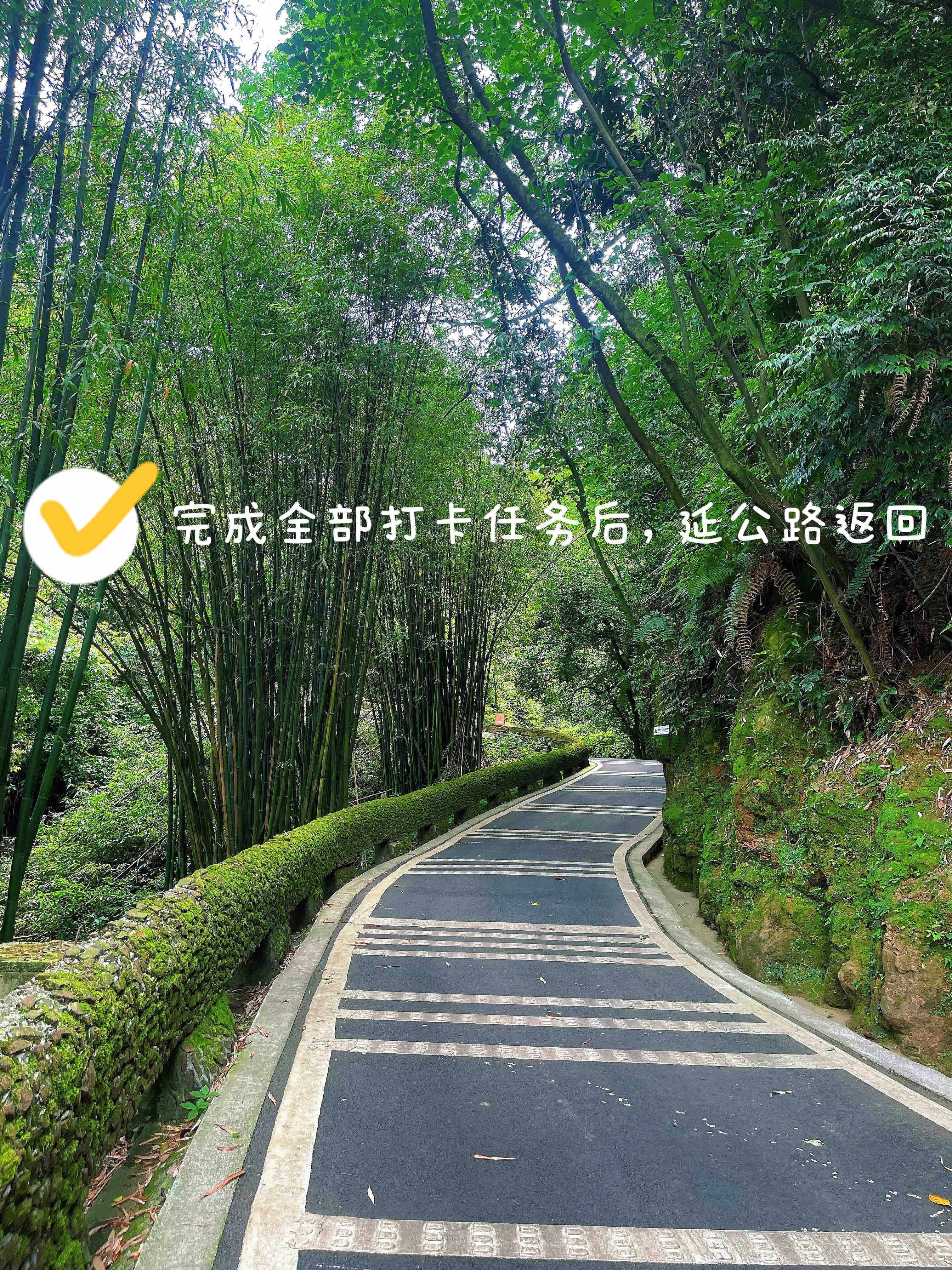到达“金顶”(景区最高处)完成最终打卡任务(图13)后(小程序提示全部点位“完成”才可以领取奖牌)按金顶打卡牌指示,延山路回到“佛缘爱”(图14)然后延公路回到徒步入口,坐车下山,在游客中心兑换!