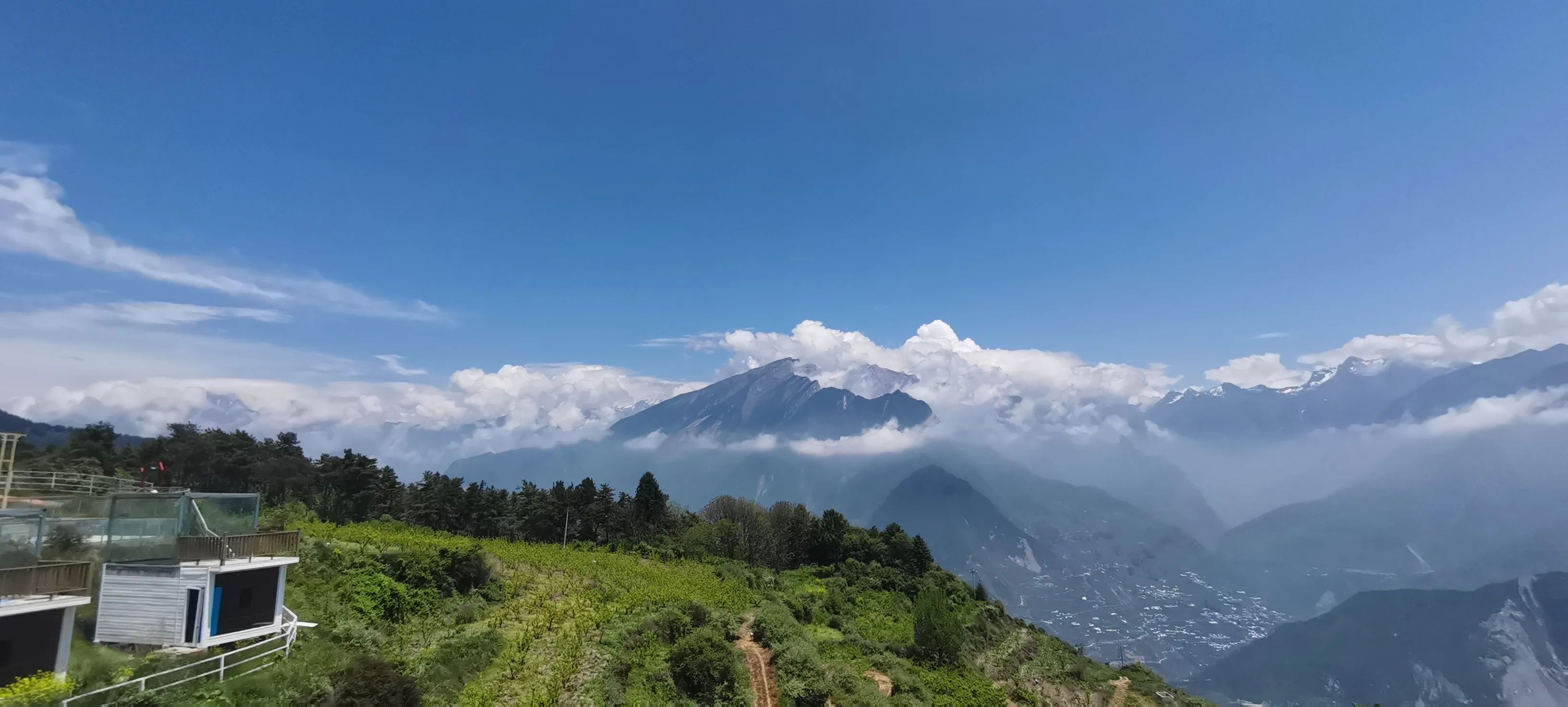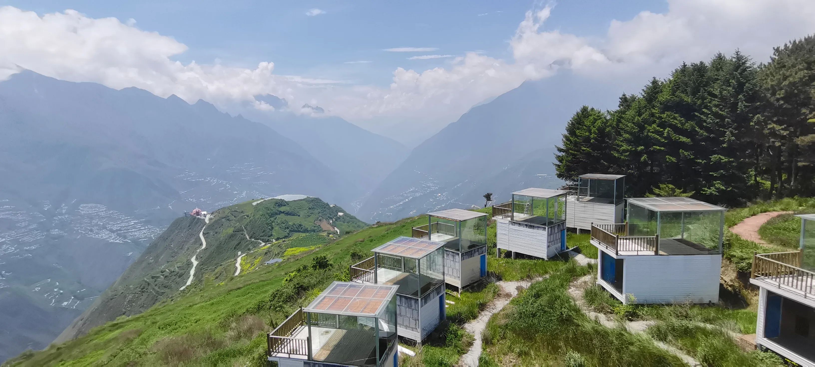 在汶川县城旁,有一个无忧集市,海拨2400左右,也就是很多贴子都提到的去往“开心牧场”的途中,直行往开心牧场,向左便是去往这个偶有人光顾打卡的无忧之地。我周末在上面两天,除了我们之外,整个场地无他人露营,零星上来的都是转一圈打个卡便走了。也许是汶川包括阿坝境内 太多类似的观景露营场地,可这地方现在免费啊,目前无人管理,场地宽阔,初具规模的小木屋和360度的星空观景房空置,随你选择,且离川A大军距离不远,实在是不要太香了。