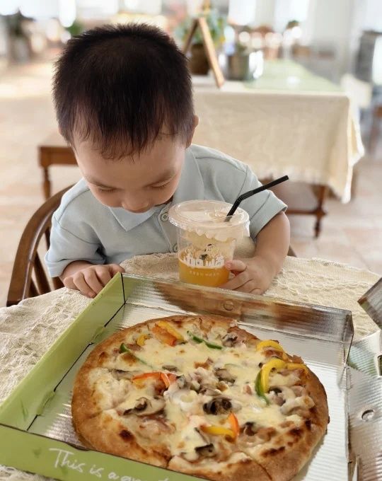 玩累了去加顺有机农场的咖啡厅坐下来歇歇,点了一杯鲜榨果汁,发现里面还有烘培课堂呢,可以家长带着小朋友做手工蛋挞,披萨,面包,棉花糖,做完可以打包带走。哇,今天又满足了小朋友自己制作美食的兴趣~