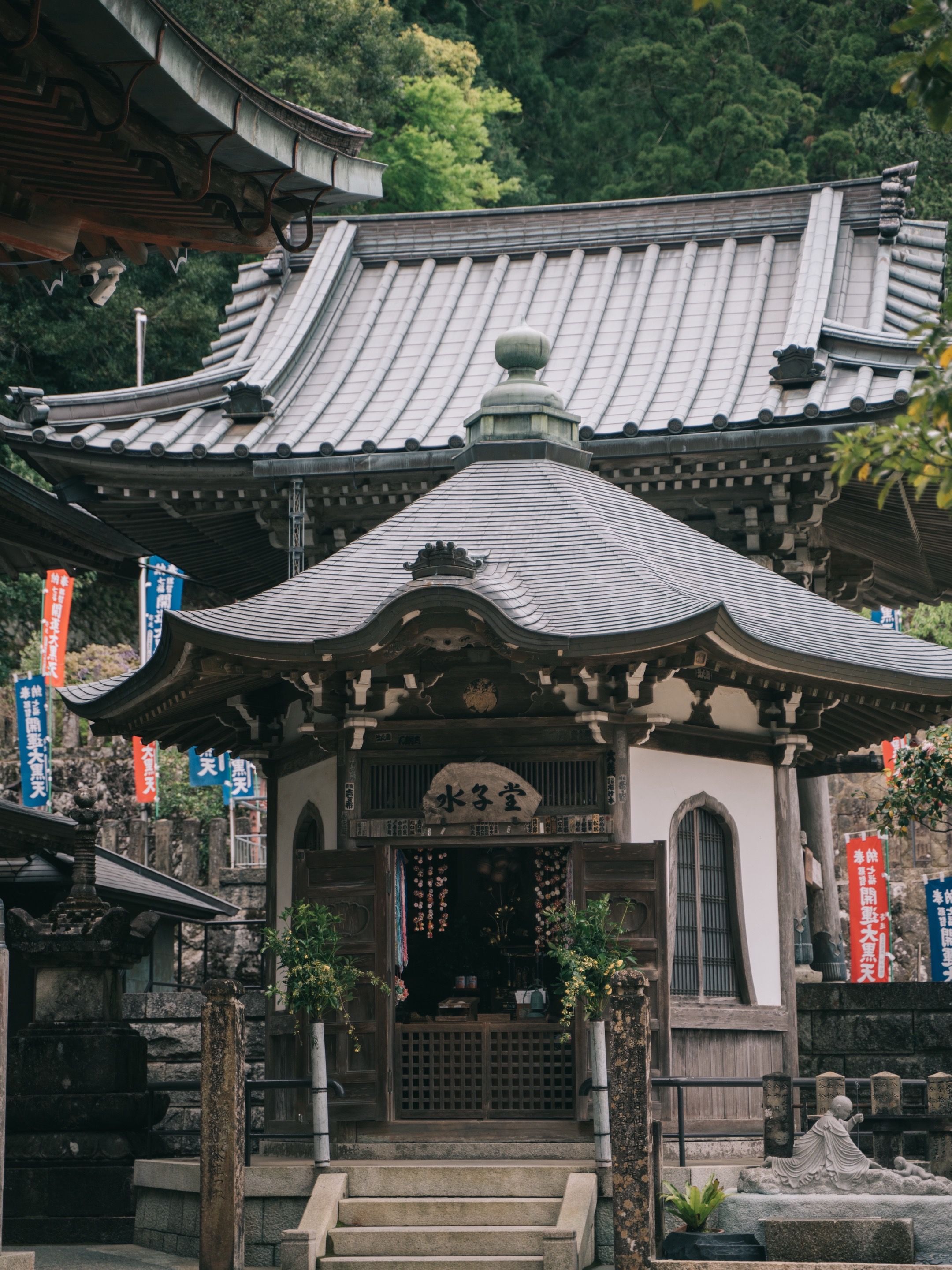 耗时1.5h,全程3.5km左右,今天这段行程全程台阶路上坡下坡,几个神社盖章点也非常集中,一路上的建筑非常精美,沿途很多百年大树,边上的注释牌翻译阅读起来也很好理解,不会走马观花。