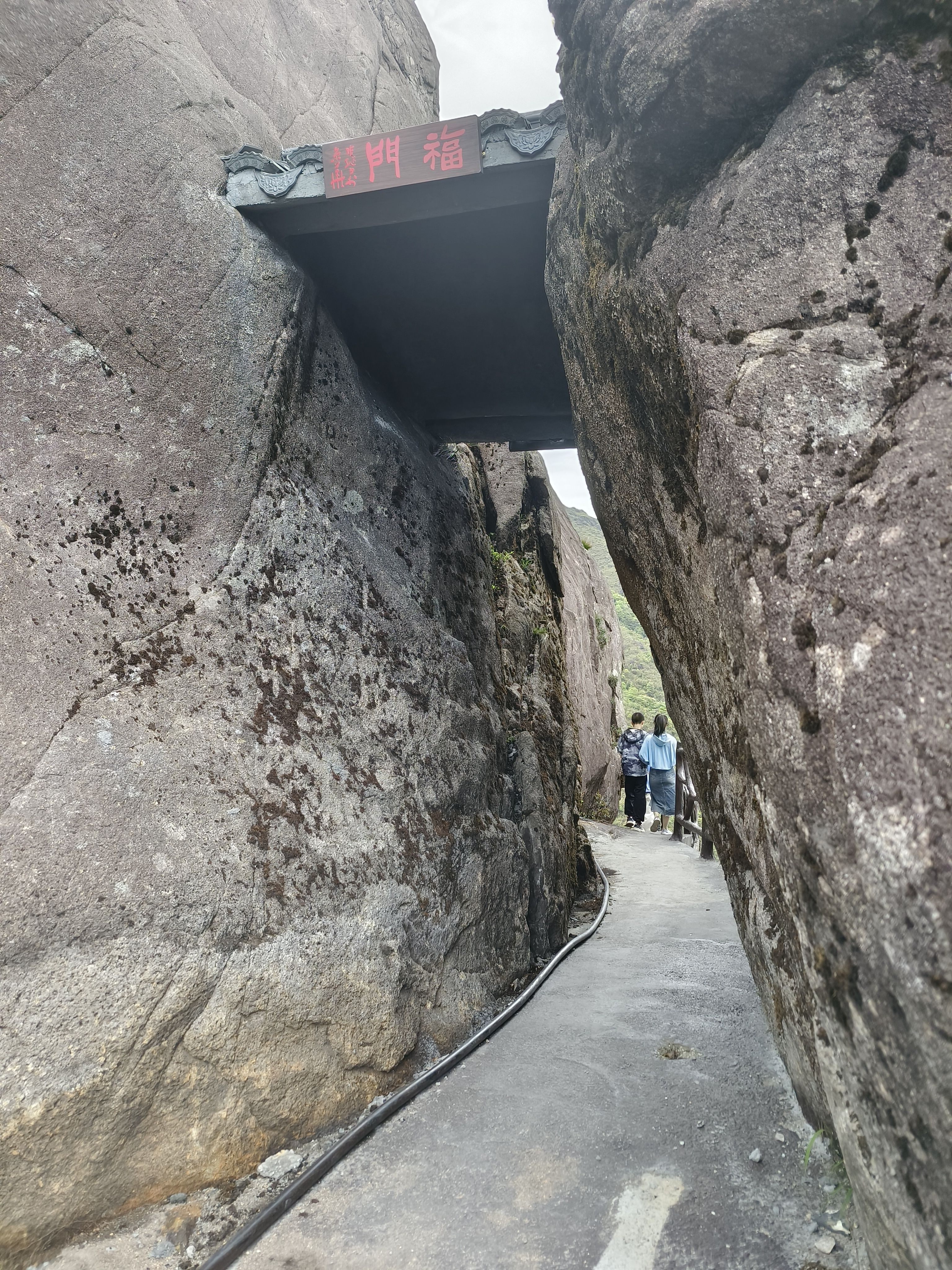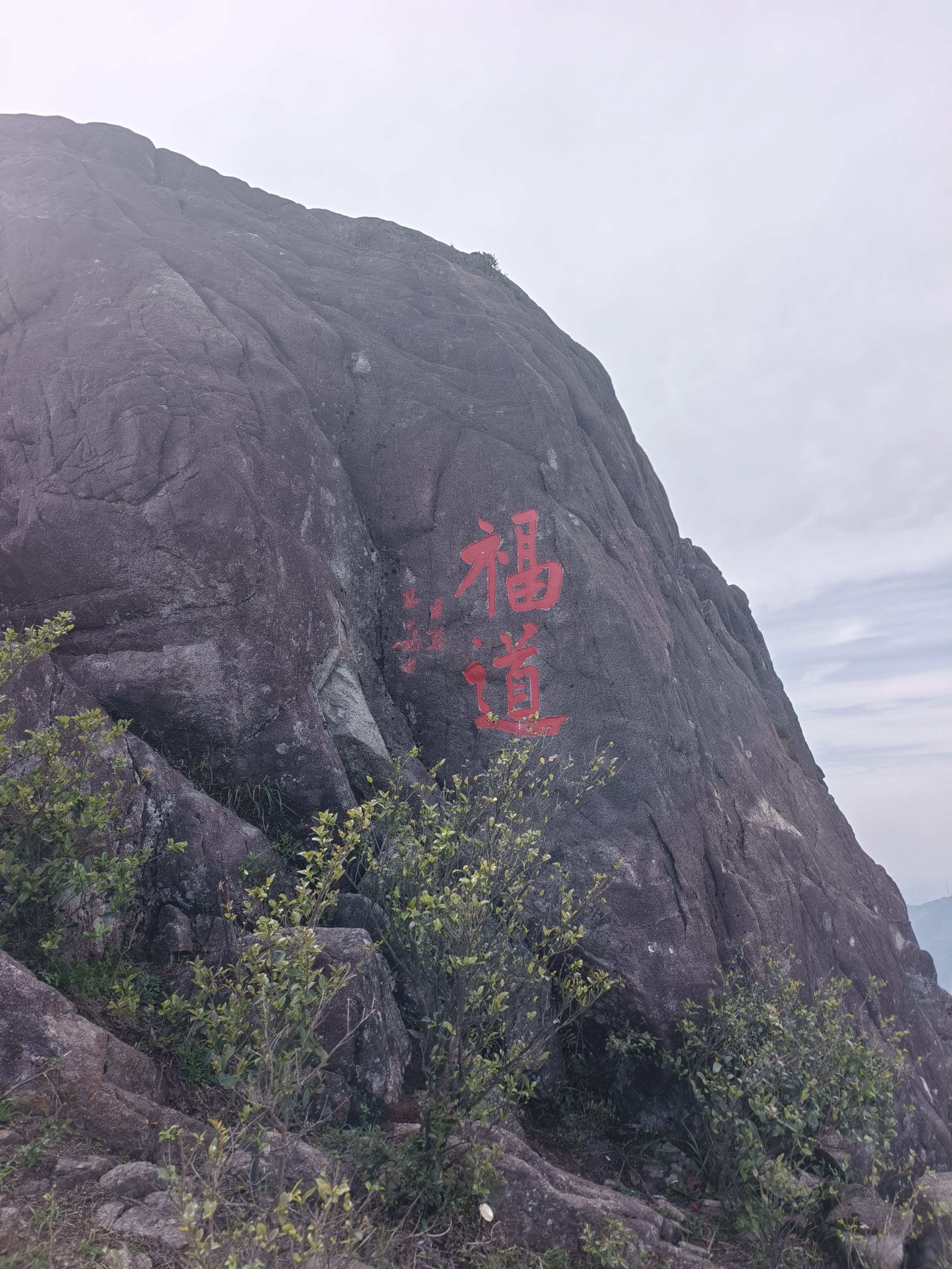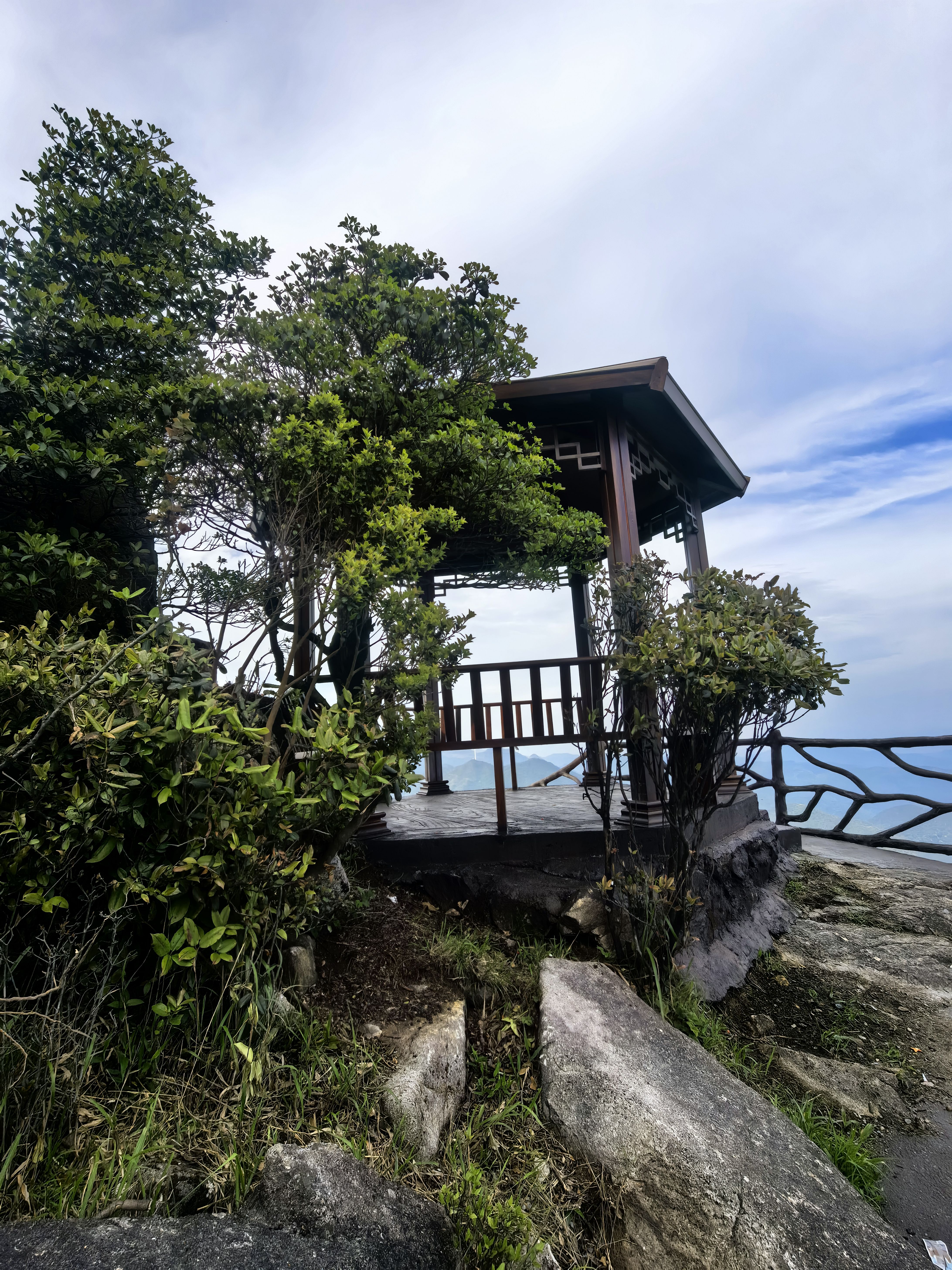 安顿了一下,我们准备向顶峰进发。当地政府修好了上山的道路,全部修筑好防滑的石板路,一步一个台阶,两边都修建好围栏,安全问题不用任何担心。走到一个小坡顶,极目远眺,四处山峦尽收眼底,山风徐来,真是令人心旷神怡。