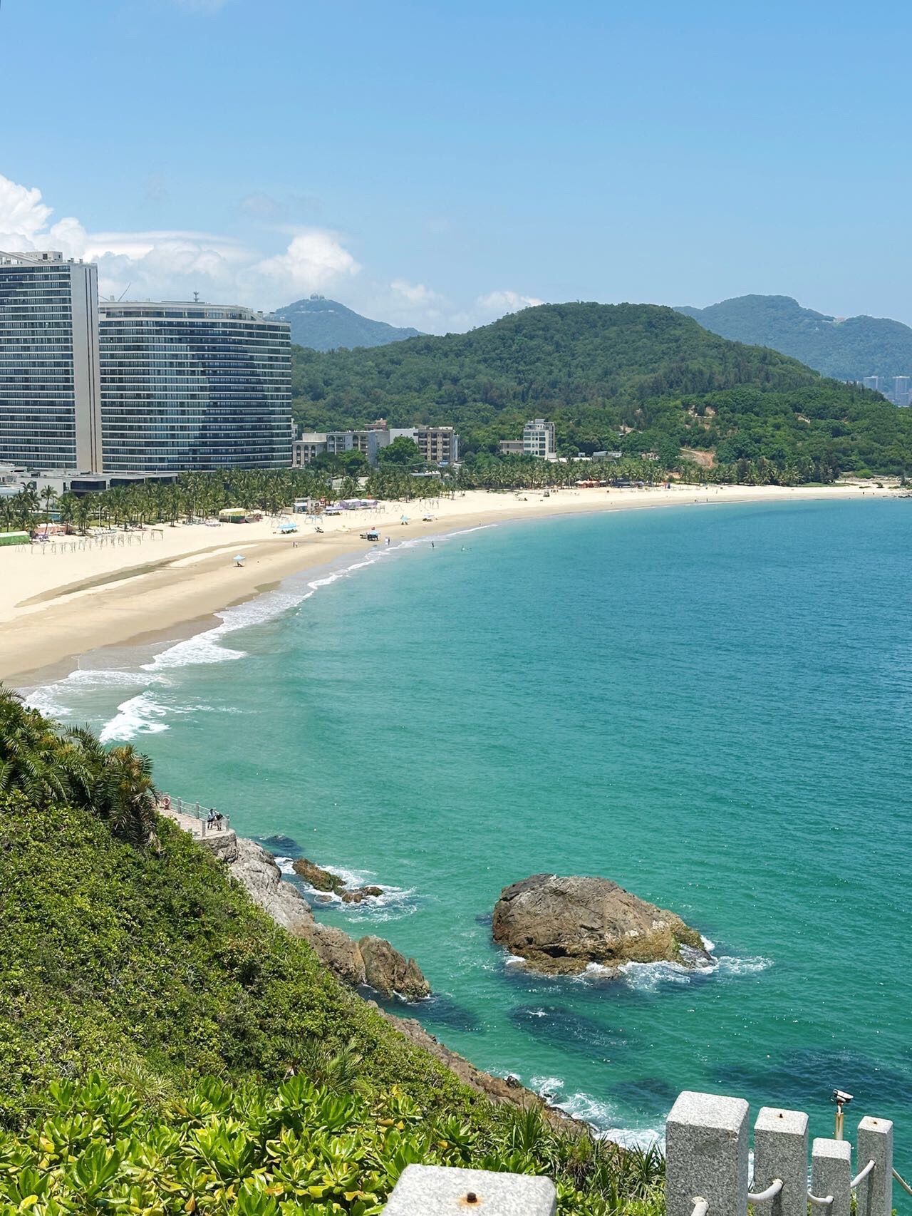 山体公园彩虹灯塔海边秋千粉色螺旋梯观景台悬崖无边泳池临海栈道椰林沙滩。