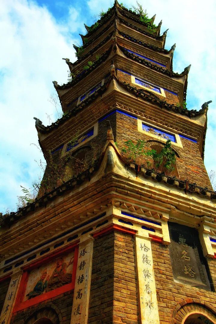 - 万名塔:在东岭山麓的沱江之滨,为六方、七级塔,用青砖等砌筑而成,每层有翘角和铜制风铃,塔面饰有彩绘、雕塑 。