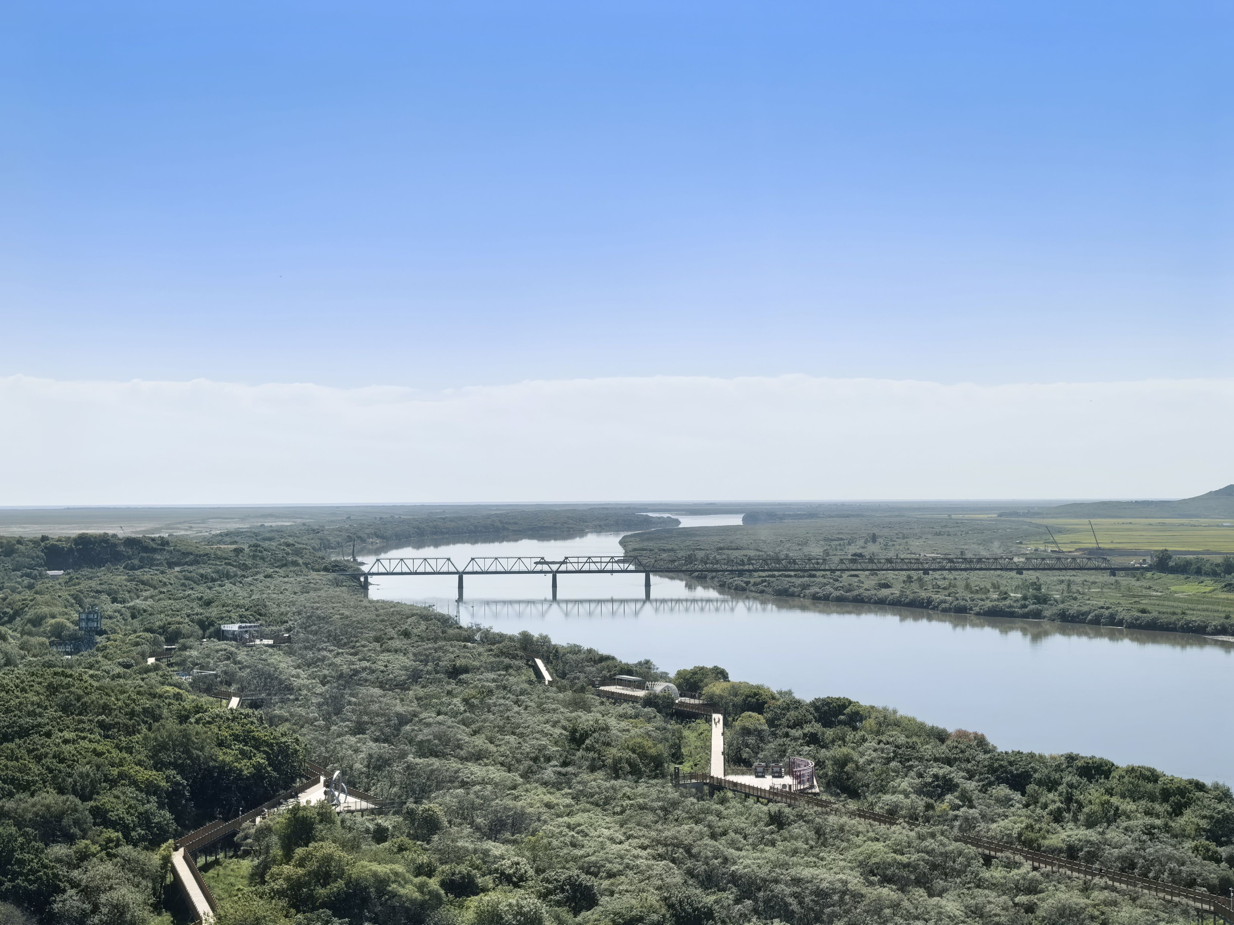 游客需要登上望三国台眺望周边,站在望三国台高处,眼前豁然开朗,可以清晰看到中国的防川、俄罗斯的克拉斯基诺和朝鲜的豆满江畔,如果用望远镜还能看到更远处的日本海。不同的地形地貌、建筑风格以及自然景观尽收眼底,仿佛在一瞬间穿越了三个国家。同时景区也紧邻图们江,游客可以沿着游步木栈道前往图们江边,看着江水悠悠,船只穿梭其间,与对岸俄罗斯的田园风光与朝鲜的村庄炊烟遥相呼应,构成了一幅和谐共生的跨国画卷。