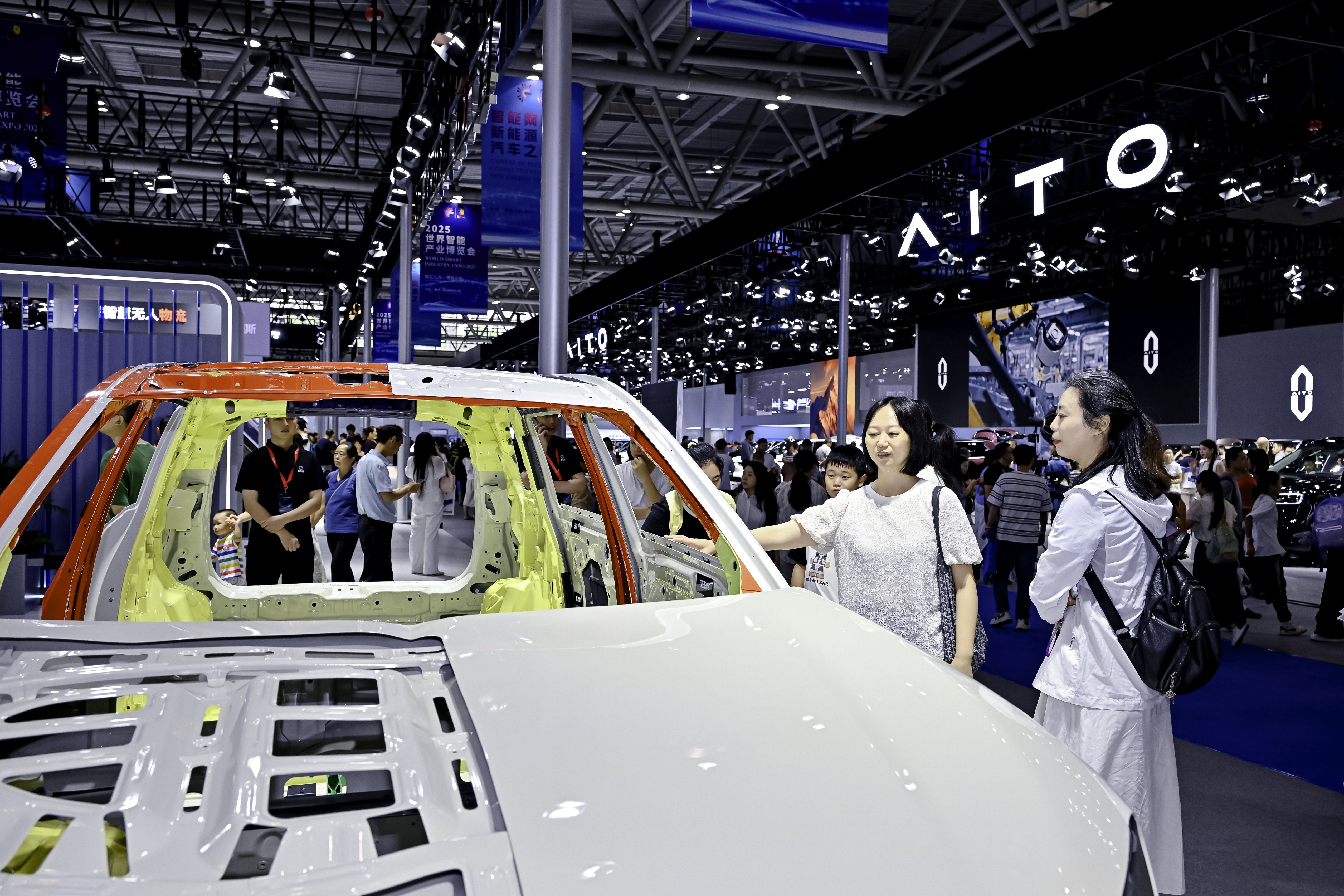 除了产品与技术展示,问界汽车还在智博会期间首次公开了其两江智慧工厂的生产实况。通过实时连线直播,观众得以一睹高度自动化、智能化的生产流程。