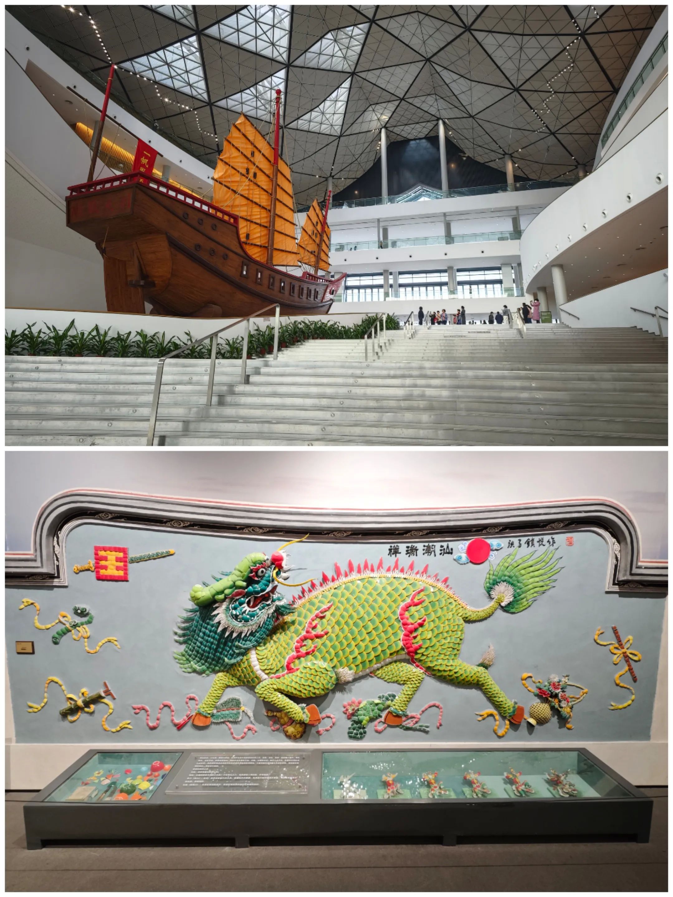 潮汕历史文化博览中心简称为“潮博馆”,其建筑风格取材于山海特色、红头船、潮汕民居,体现“山海交融”的特色,造型向海如山脊、似潮汕民居的五行山墙,向山像海潮涌动、如红头船舷。在此能够了解潮汕华侨的历史,欣赏潮汕的非物质文化遗产。