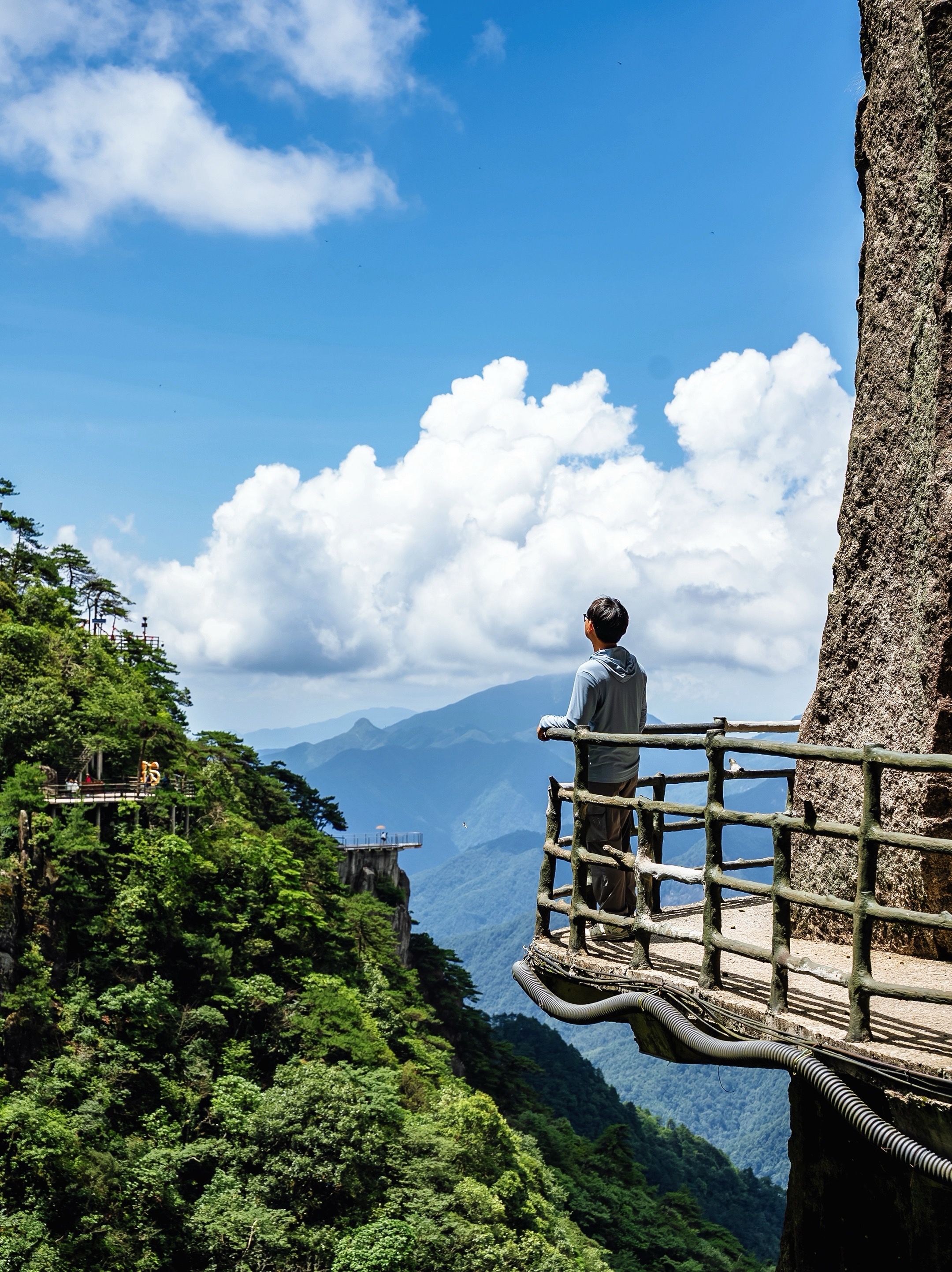 吉安羊狮慕景区以奇特的花岗岩峰林地貌、丰富的自然景观(云海、佛光、飞瀑等)、深厚的福文化与道教底蕴为代表,很适合假期游玩。凌云栈道是必玩的,它全长4000余米,蜿蜒盘旋在深不见底的悬崖峭壁之上,宛如一条巨龙随着山势起伏,游客可以在此全方位欣赏到景区内的奇峰怪石、云海雾涛等绝美景观。