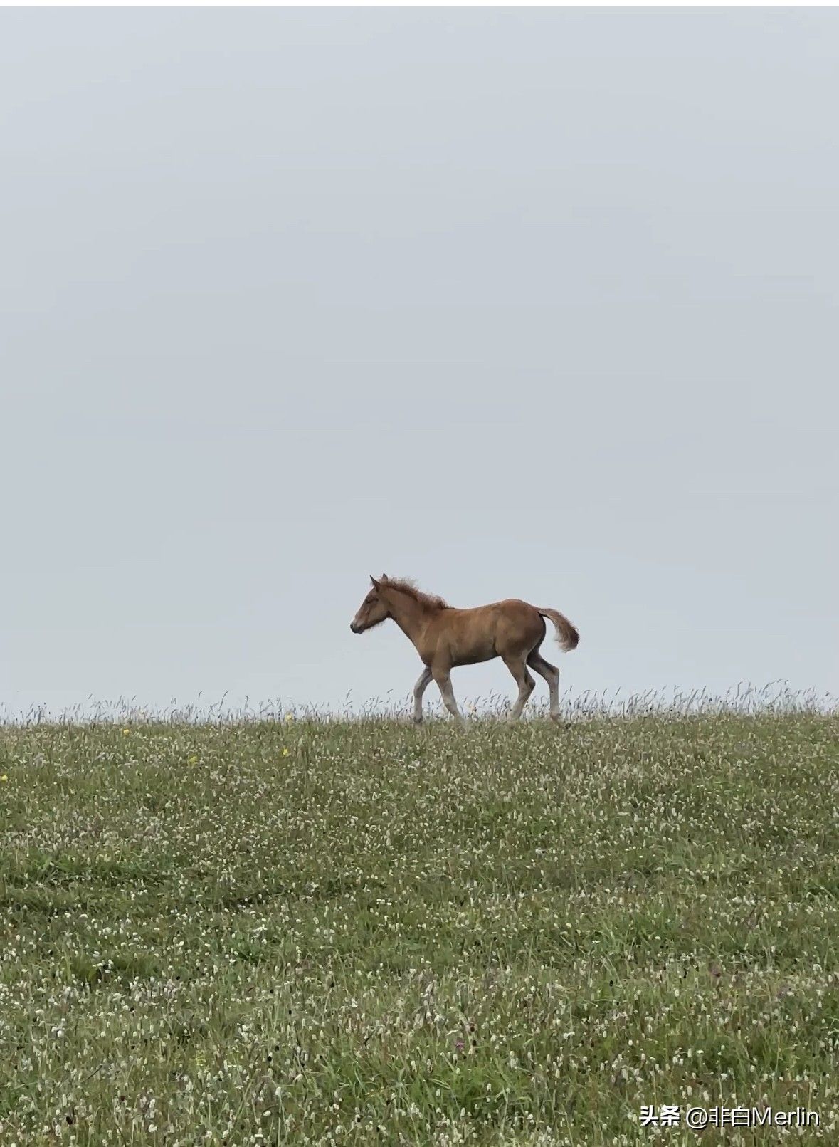沿着隐约可见的小径往前走,雾在身边流动,时而浓得化不开,伸手不见五指,只能听见自己的呼吸与远处若有若无的鸟鸣;时而又忽然散开一道缝隙,漏出一片翠绿的草坡;薄雾中小马欢快的跳跃,让云笼雾绕的远处平添一份灵动,欢快和趣味。