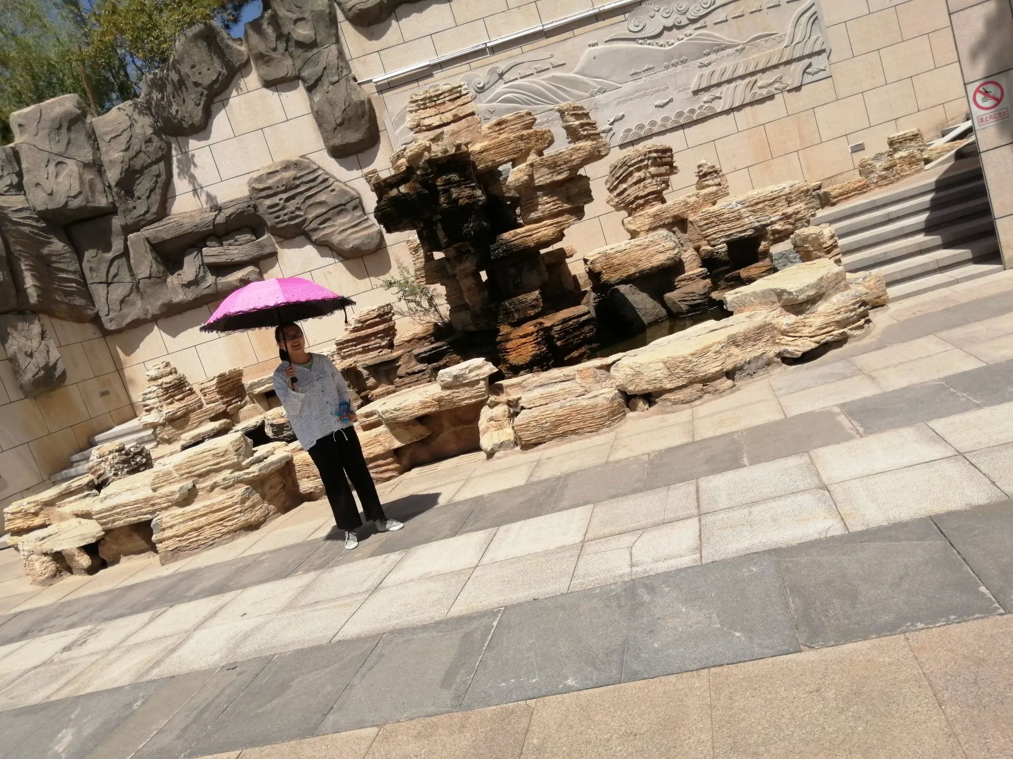 我们直奔贺兰山岩画景区。烈日下玫红色遮阳伞格外醒目,伞下的母亲正对着赭红色山岩上的太阳神图腾出神。手指抚过岩壁的刻痕,西夏人牧马、围猎的场景在讲解员的叙述中鲜活起来。仿古岩墙的云纹浮雕间,母亲掏出笔记本抄录:"你看,这云纹和鄂尔多斯青铜器上的图腾一脉相承。"