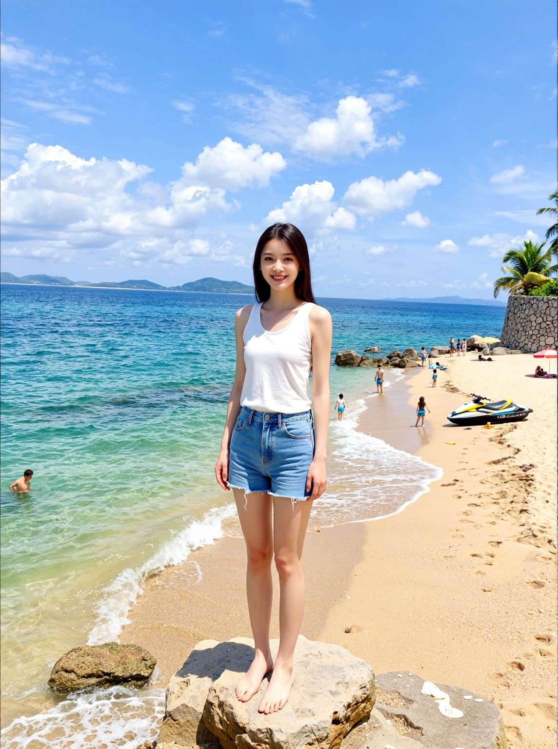 - 沙滩与海景:沙质细腻洁白,号称“银滩”,海水呈浅蓝、深蓝、湛蓝的渐变,如玻璃海般清澈,全长约1000米的月牙形海岸,三面环山,一面临海。