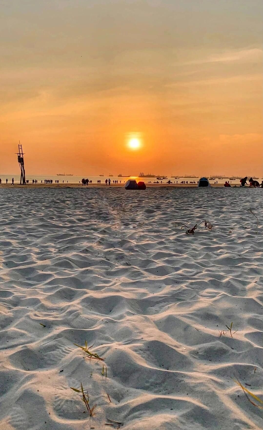 傍晚时分,夕阳像打翻的橙汁,整条海滩变成金色片场,手机随手一拍就是壁纸。