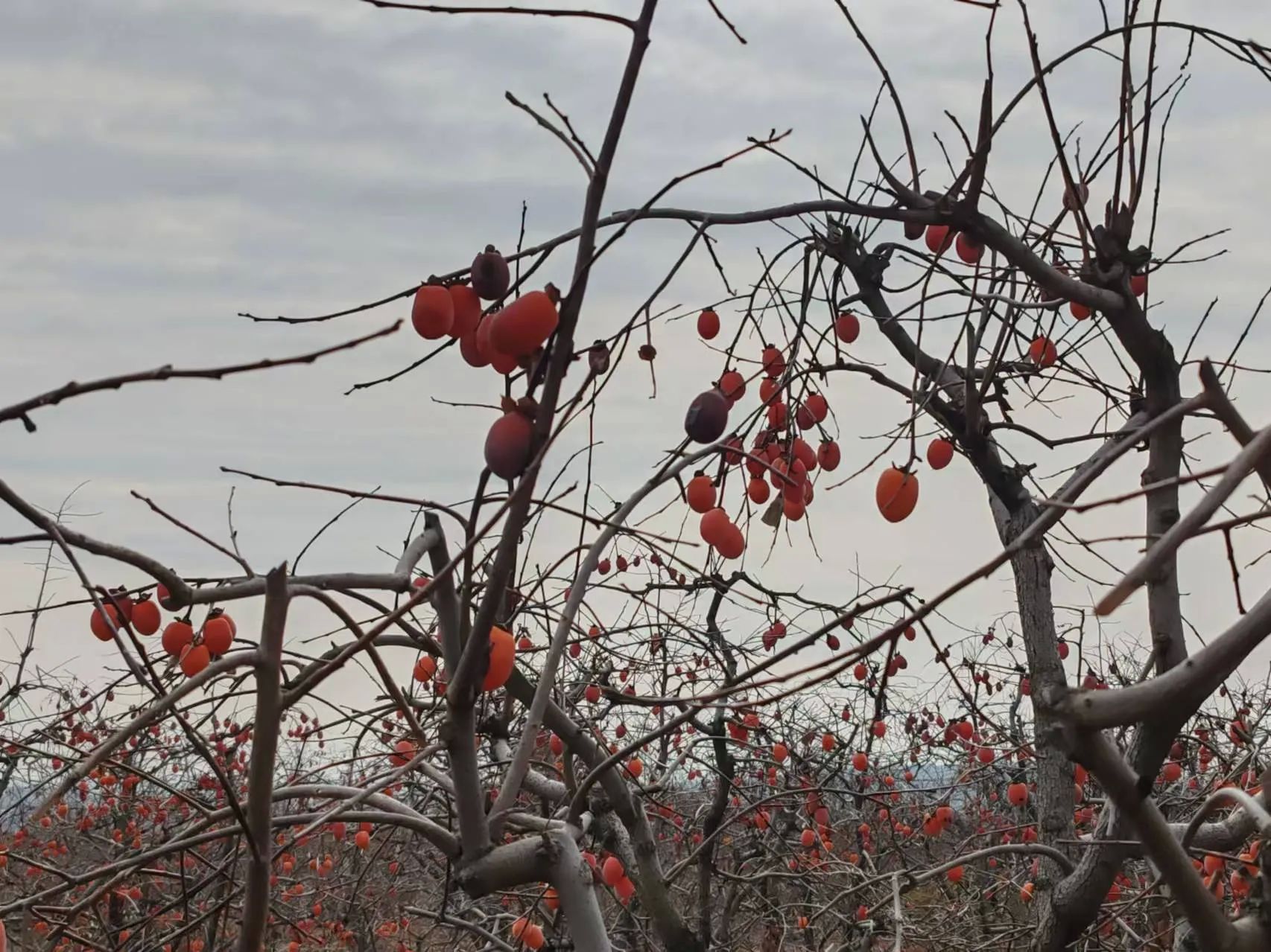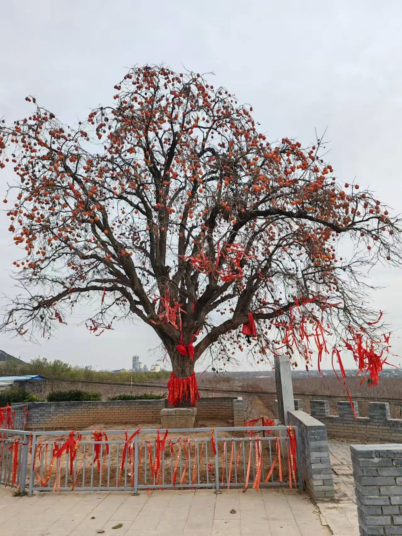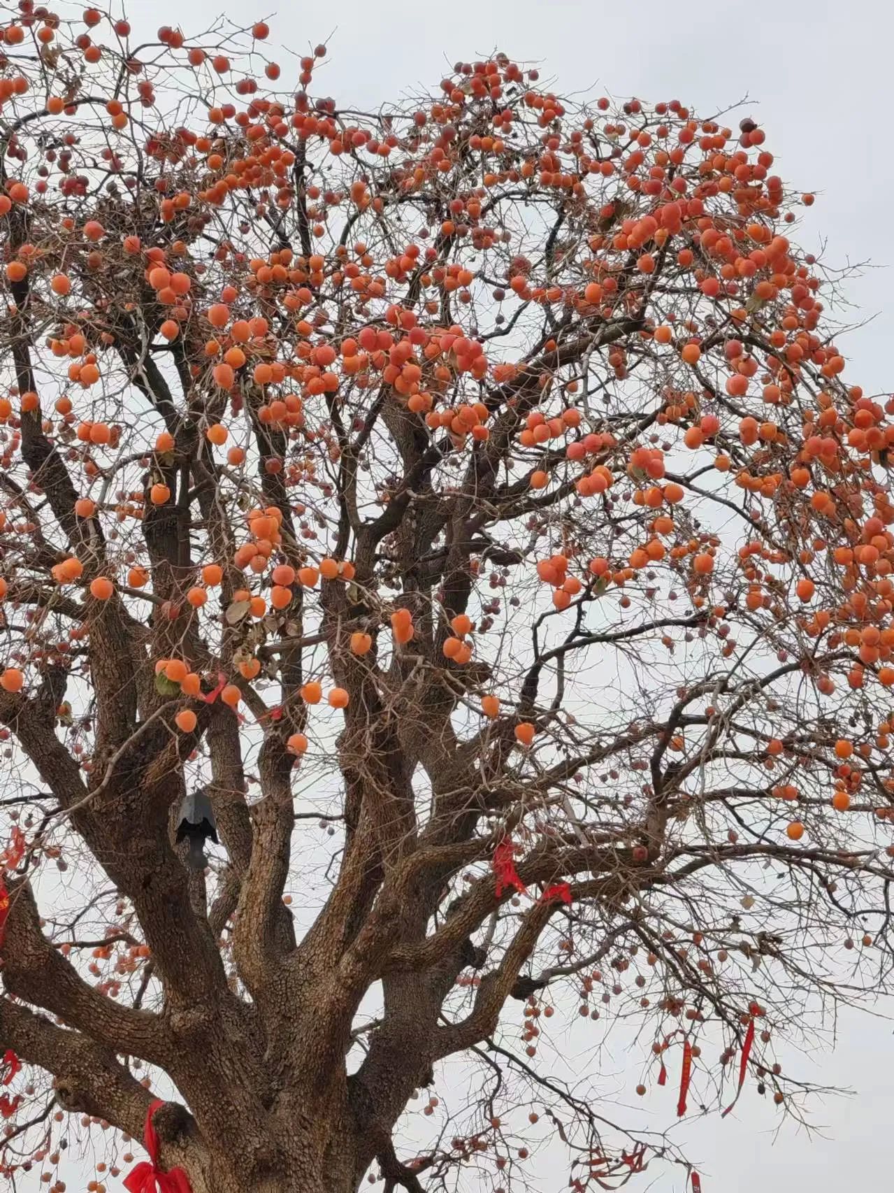 在探寻之旅中,我们偶然搜索附近,竟发现了唐顺宗丰陵。怀着好奇前往,抵达丰陵时,惊喜地看到那棵传奇的千年柿子树就在眼前。怀着敬畏之心,我们虔诚地拜谒了树王,只见它果实累累,满是岁月沉淀的馈赠。周围农民地里的柿子也挂满枝头,只是已变软,据说只能用来酿醋了。
