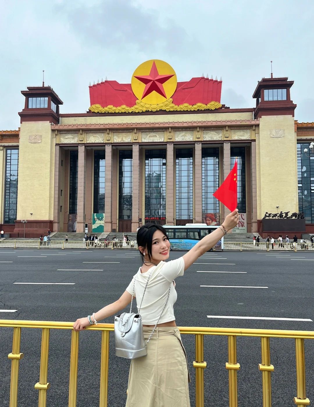 拍照机位1号线3号口扶梯直上,地铁门口有卖小红旗2R一面