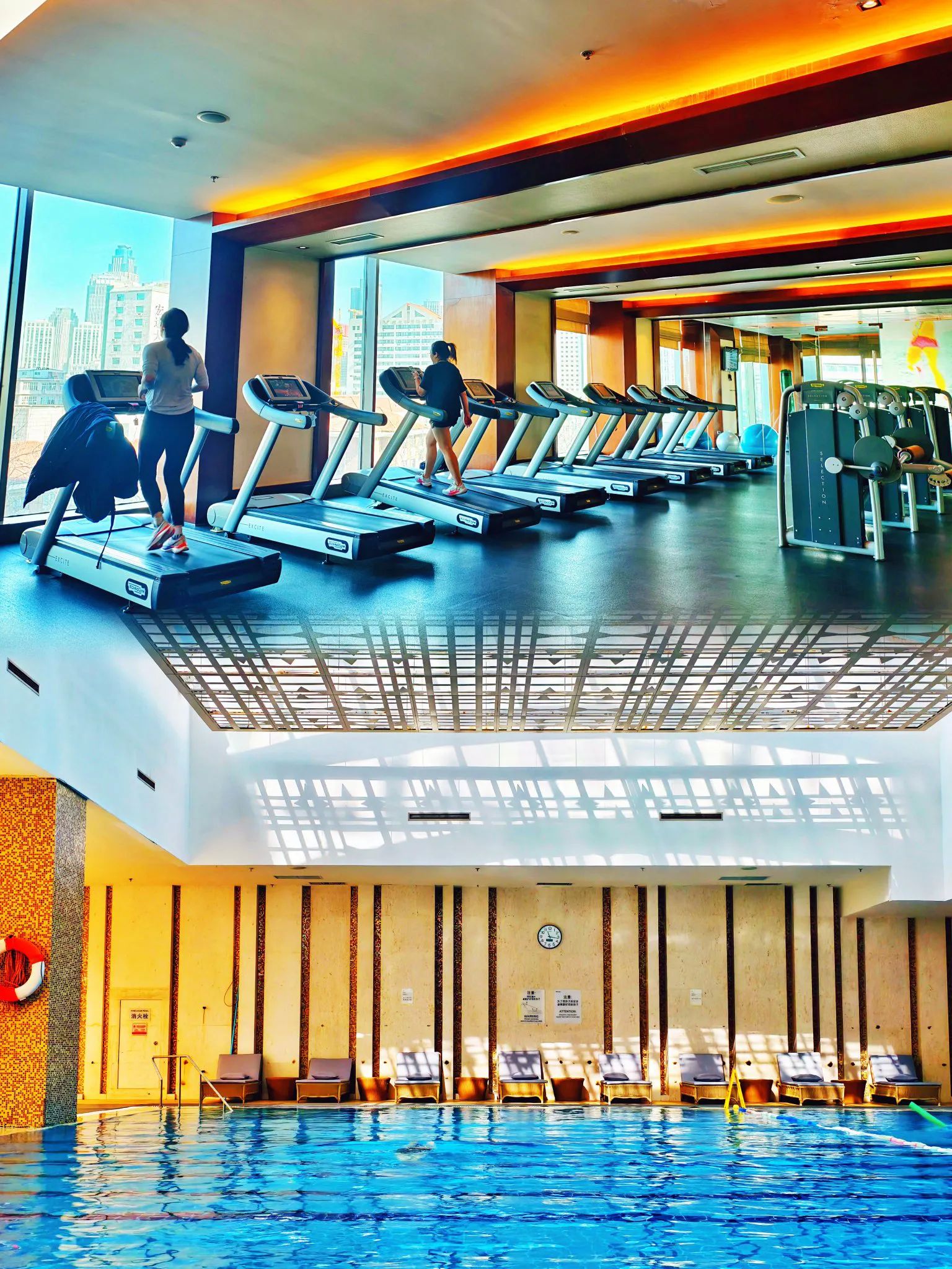 若想以运动唤醒春日活力,5层的恒温泳池不容错过——玻璃顶将阳光滤成粼粼波光,游弋其间仿佛置身空中水晶宫。而24小时开放的健身房内,跑步机正对窗外五大道的红色屋顶,历史与当下在汗水中达成默契。
