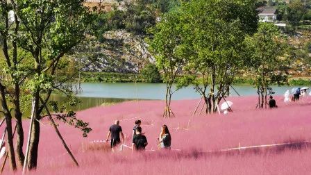 沙坪坝歌乐山中梁镇斐然湖:被环抱在青山之间,宛如一颗璀璨的“明珠”,周边有大片草坪,适合野餐、露营,9月粉黛、马鞭草盛开,超级出片。