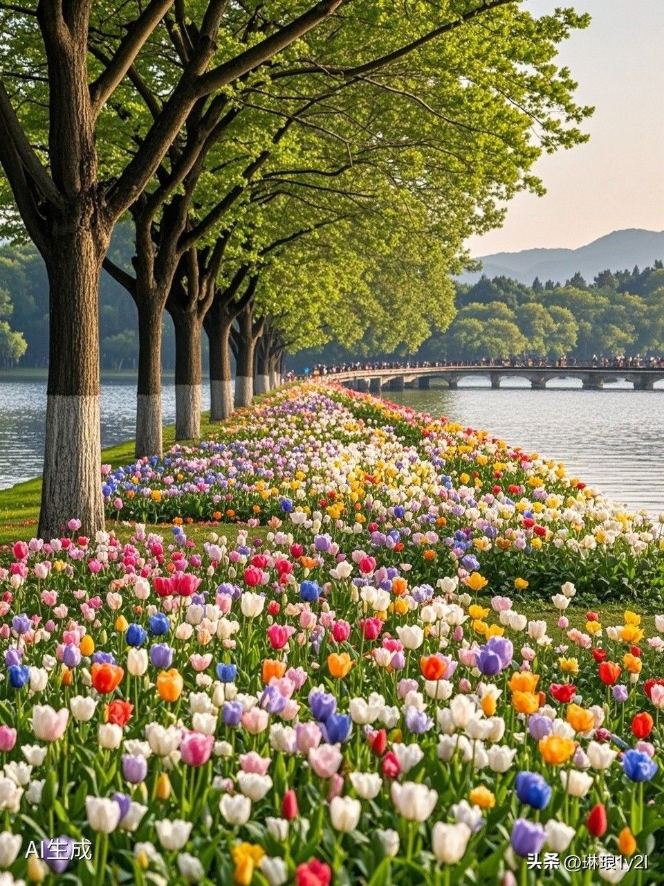 就拿西湖十景来说吧,啥苏堤春晓、曲院风荷、平湖秋月、断桥残雪,每一个景都绝了。先说说苏堤春晓,春天的时候去那儿,沿着苏堤漫步,两边全是嫩绿嫩绿的柳树,风一吹,柳枝就跟跳舞似的,飘飘悠悠的。堤上还有各种各样的花儿,红的、粉的、紫的,五颜六色,那叫一个鲜艳,香得不得了。一路上还能听见鸟儿叽叽喳喳地叫,心情一下子就美美的,感觉所有的烦恼都没啦。