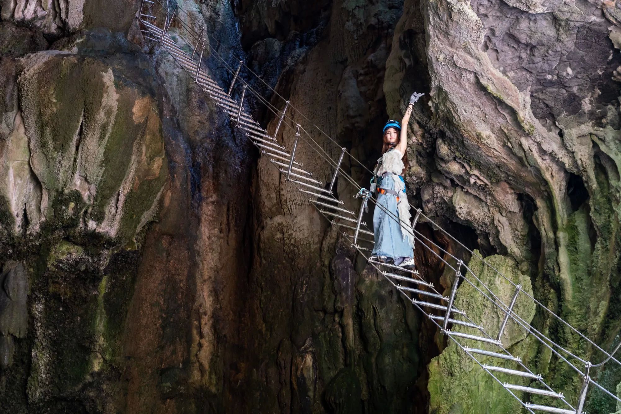 穿专业装备+头灯进钟乳石洞探险!
