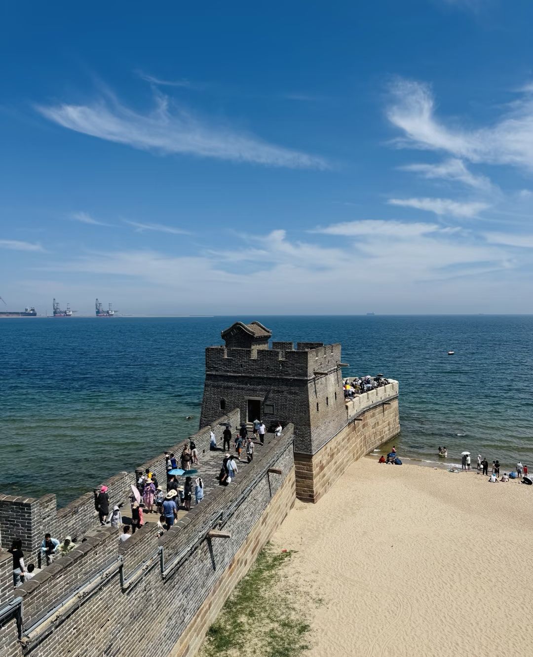 实操建议:早8点前入园避开旅行团。路线推荐:天下第一关登城楼步行至老龙头(约3公里)。穿防滑鞋!台阶陡。