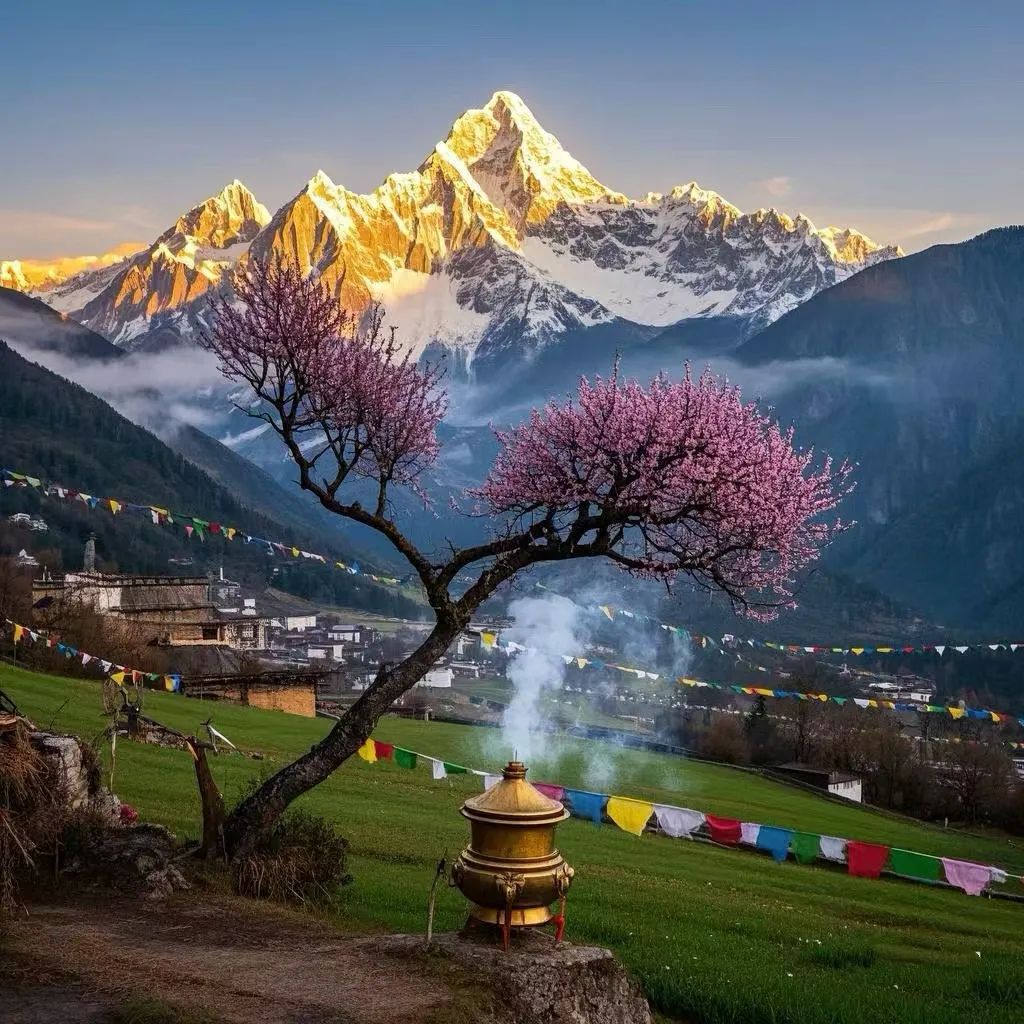 三月中下旬,藏东南的桃花沟宛如被大自然打翻了颜料盘,进入了最迷人的盛放期。绵延数十公里的野生桃林肆意绽放,粉白的花瓣在微风中轻轻摇曳,与远处的皑皑雪山、幽深的峡谷以及错落有致的藏寨相互映衬,宛如一幅绝美的山水画卷,让人仿佛置身于“人间桃源”。