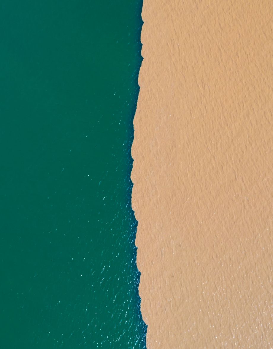 泥土与大海的气息、黄色与蔚蓝相互碰撞却不相融,在交界处,好似一条蜿蜒的长龙,在河与海之中遨游!