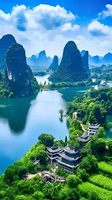 漓江景区:漓江是桂林之美的典范,以其两岸奇峰林立、碧水环绕的自然风光而闻名。乘坐竹筏或游船游览漓江,可以欣赏到如诗如画的绝美风光,是桂林旅游的必游之地。
