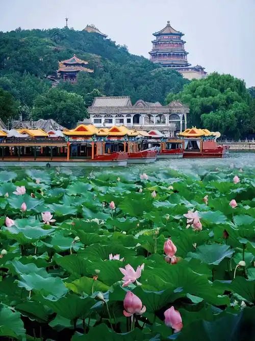 日落时佛香阁被金纱笼罩,夜幕下画舫如流动星火,特别美。 除了“金光穿洞”和昆明湖泛舟,颐和园的谐趣园也是不可错过的绝美景观。它有着“园中之园”的美誉,仿无锡惠山寄畅园而建。一进谐趣园,便能看到一汪清澈的池水,水榭、亭台、曲廊环绕四周。夏日里,满池的荷花竞相绽放,粉的似霞,白的如雪,微风拂过,送来阵阵清香。
