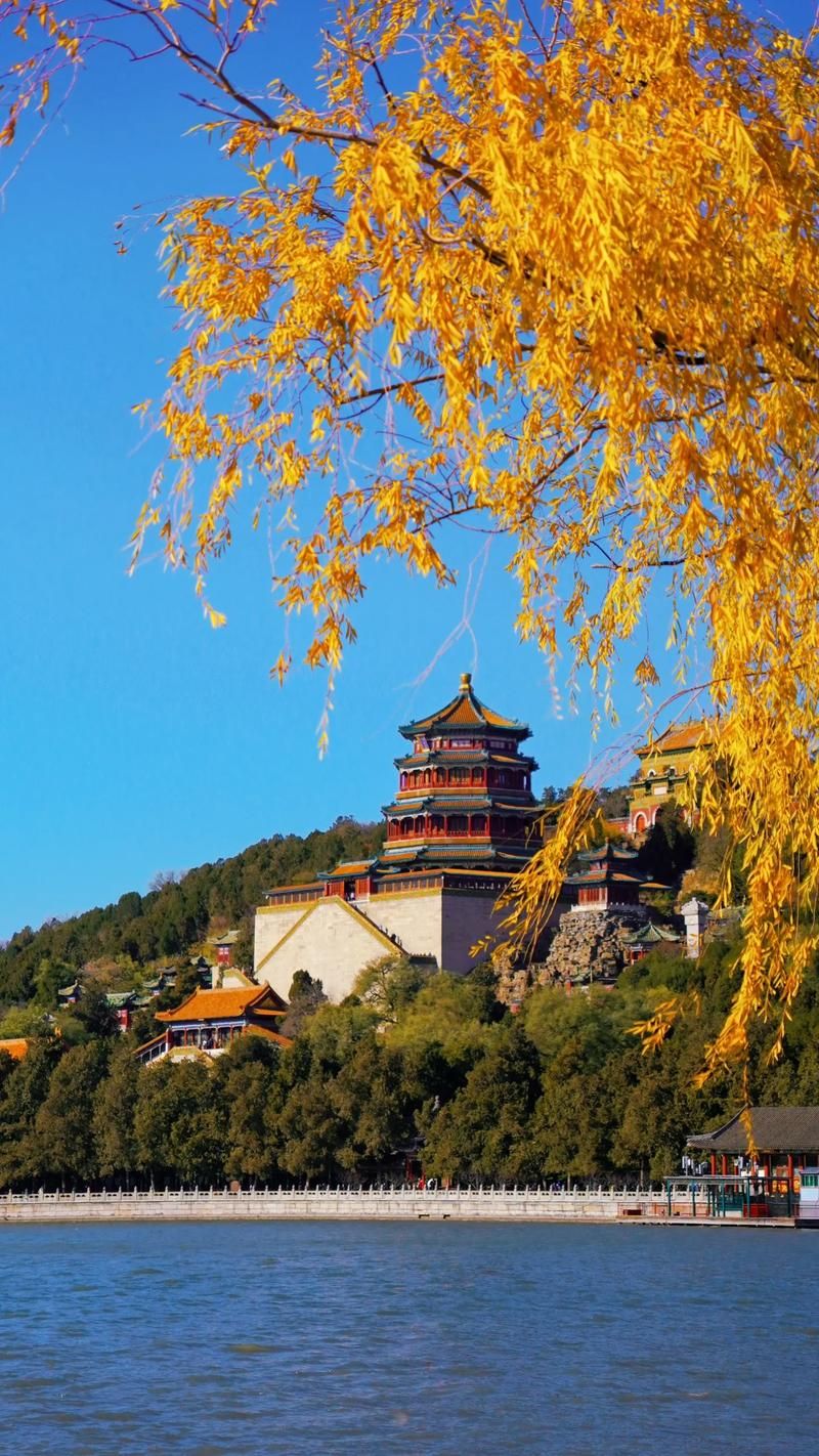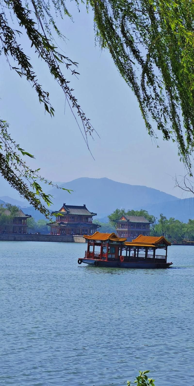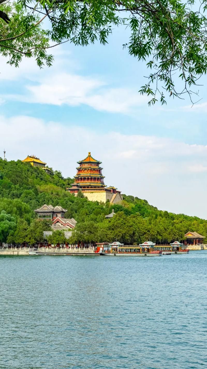 还有昆明湖泛舟,碧波上一叶扁舟划开涟漪,远处万寿山与佛香阁倒映水中。佛香阁朱红廊柱托起鎏金宝顶,彩绘斗拱在蓝天格外亮眼。透过长廊镂空花窗,四季美景各有韵味。