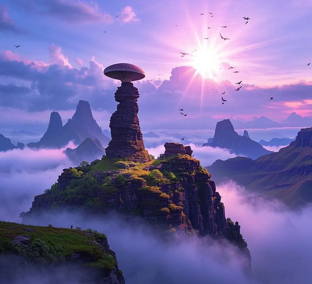 登上2336米红云金顶,伸手就能摸到翻滚的云海!蘑菇石在晨雾中若隐若现,难怪被称为“中国版天空之城”。
