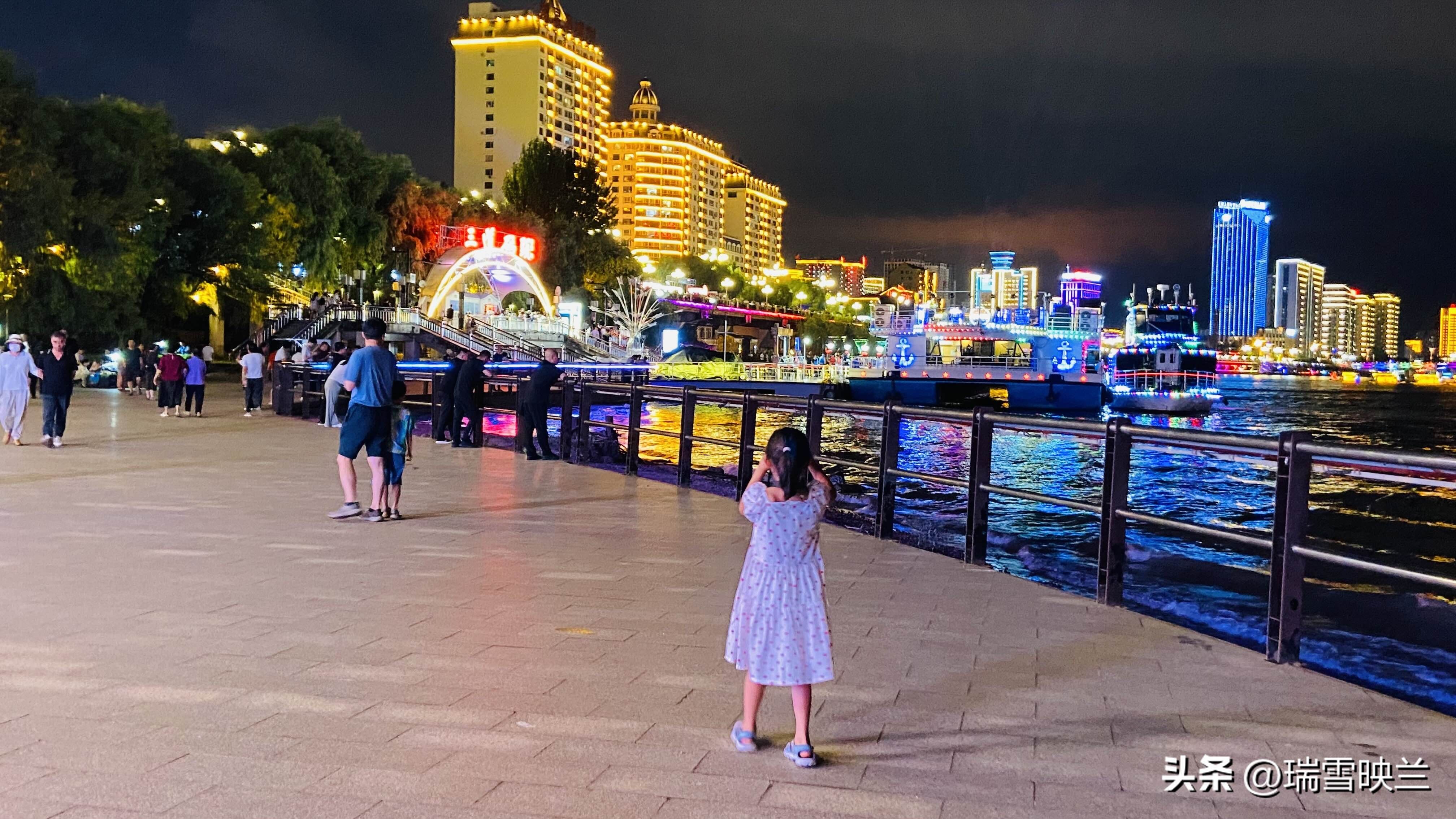 一圈下来已经是下午六点多,匆匆赶到松花江边的三号码头,在江边的摊位上简单地吃了一点东西,已是夕阳西下的时候,天边的落日映照着波光粼粼的江面,绚丽多彩的晚霞如梦如幻,与岸边建筑群中璀璨的灯光相映成趣,江面上不时驶过的彩色游艇,使本来就是一幅五彩斑斓的画面瞬间变得灵动无比。