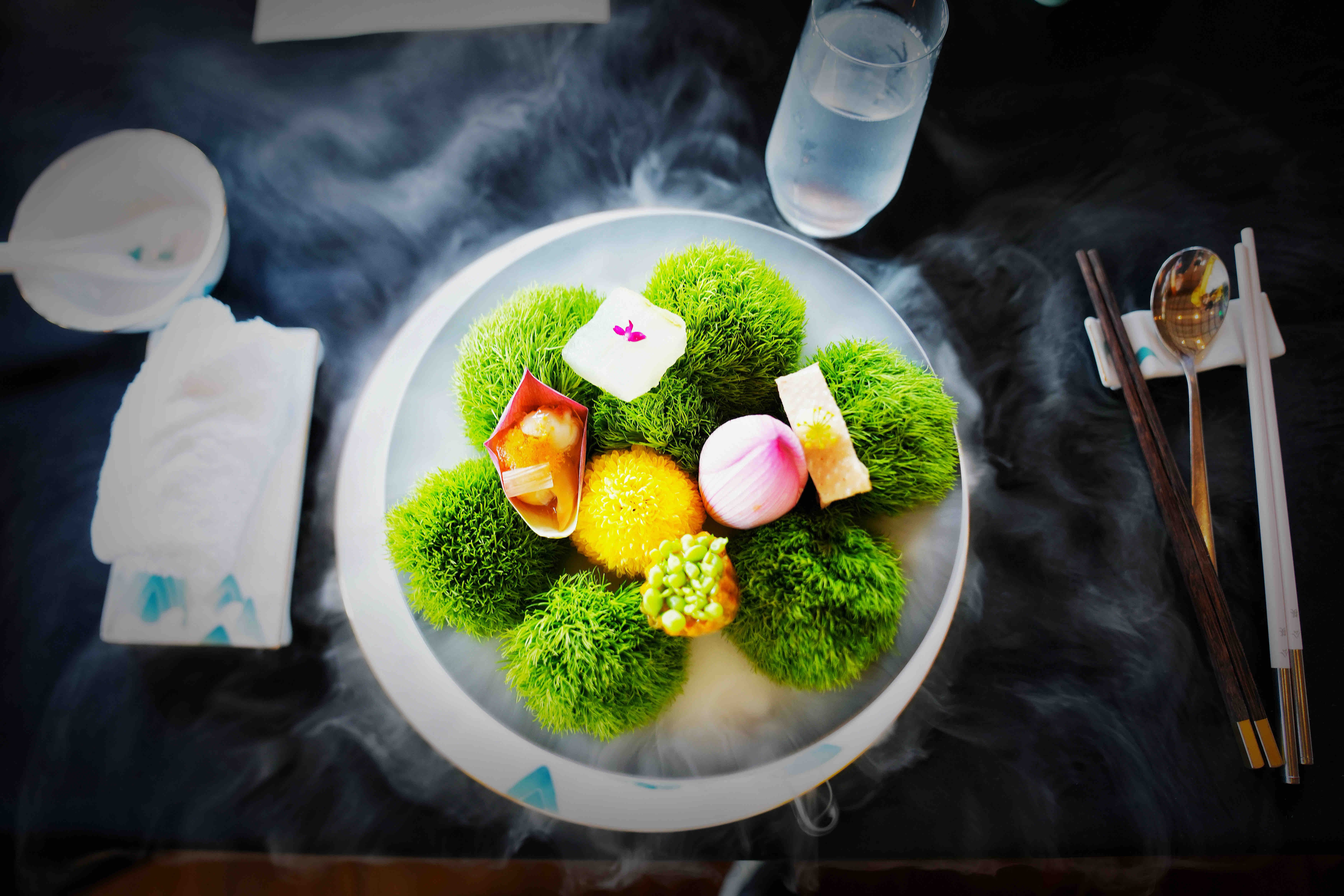 压轴的绍兴干菜雪花牛*更是惊艳!乌黑油亮的传统干菜碎,如墨渍般晕染在顶级雪花牛肉的肌理间,高温炙烤下,干菜的醇厚咸香与牛肉丰沛的油脂、细腻的肌理完美交融,入口即化,咸香回甘。