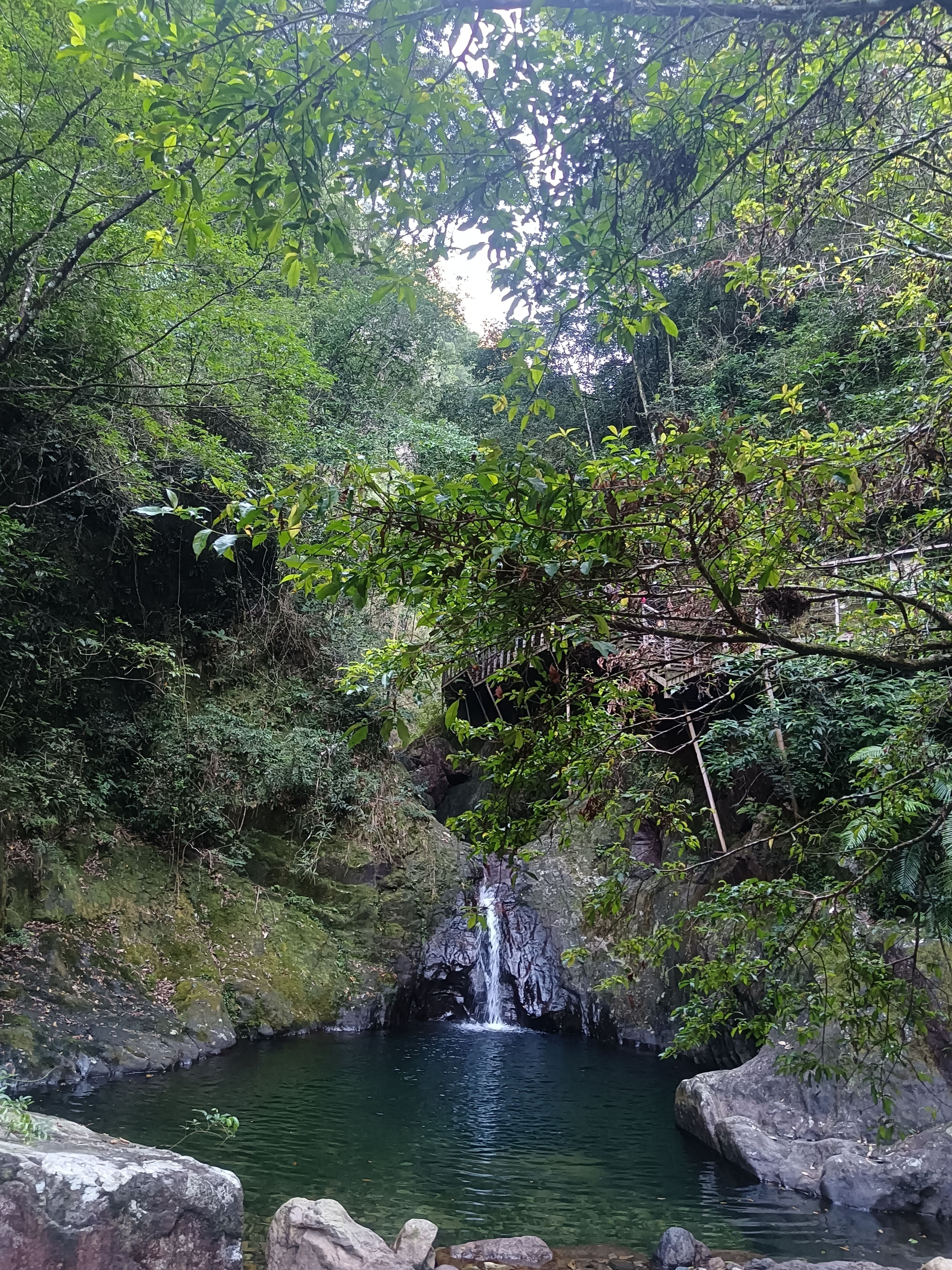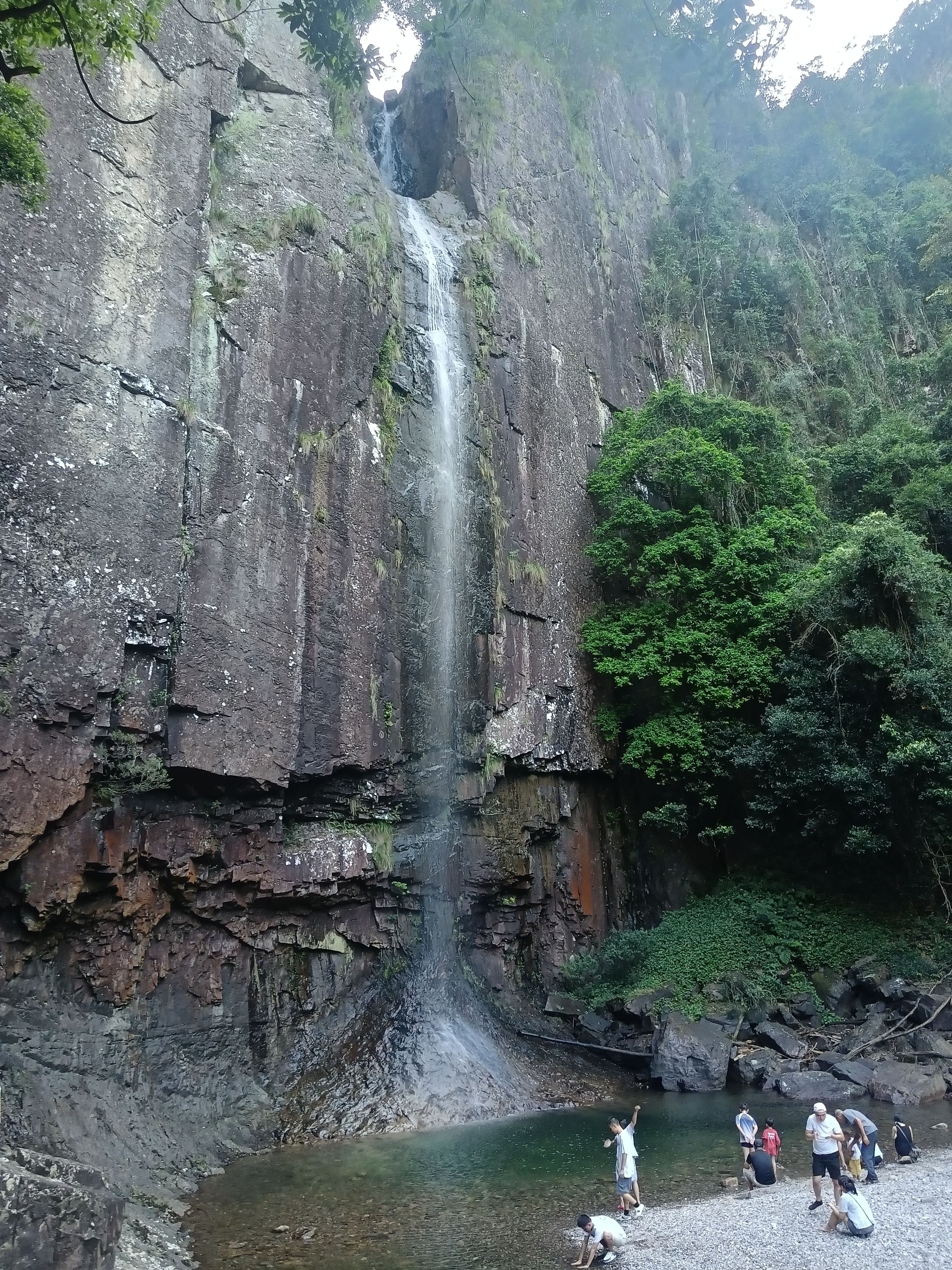 越往深处,水声愈响,从若有若无的背景音逐渐变为清晰的轰鸣。我们的心情也随之愈发期待。然而,当瀑布最终完整地呈现在眼前时,我脱口而出:“啊,比想象中要秀气一些。”