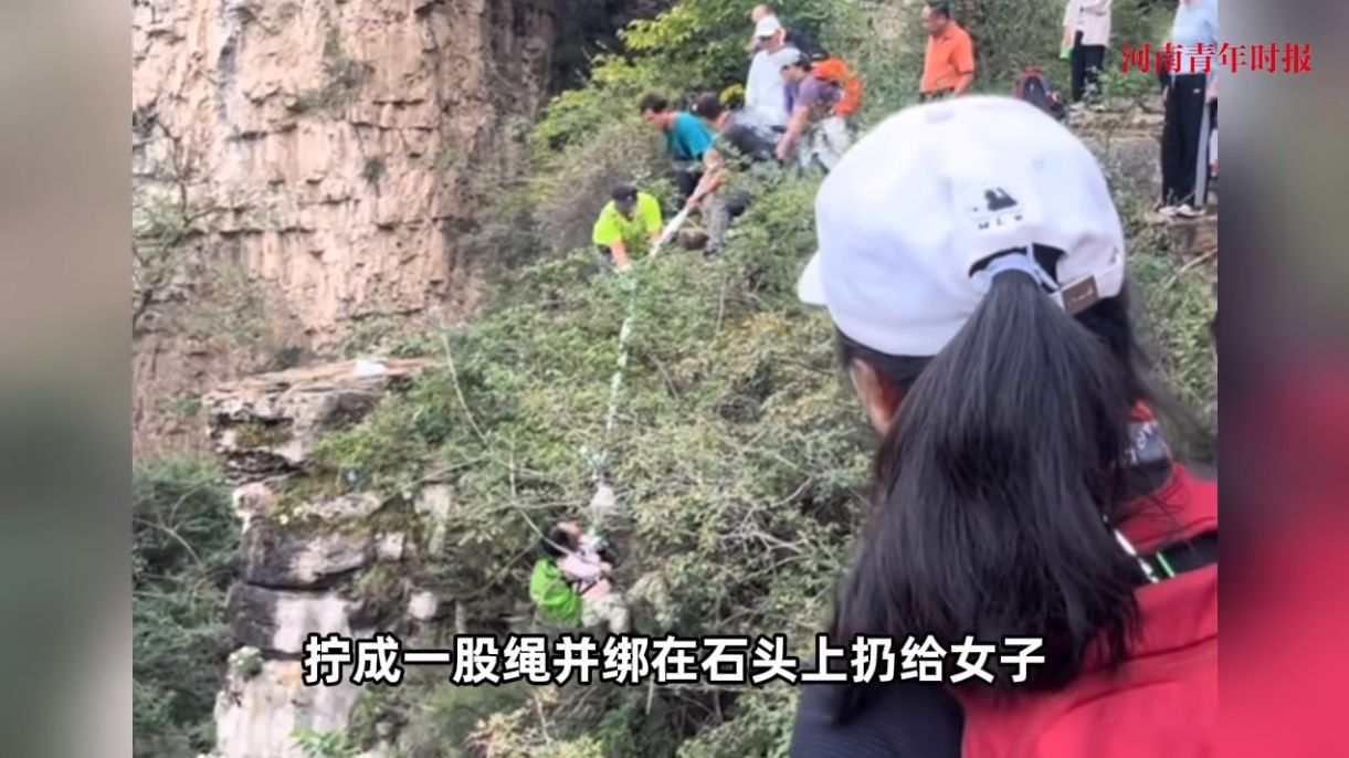 最终一位游客贡献出了自己的保温毯,大家把它拧成了一根绳子,这才慢慢放下去让女子抓住,最终经过所有游客的齐心协力,女子成功被救了上来!