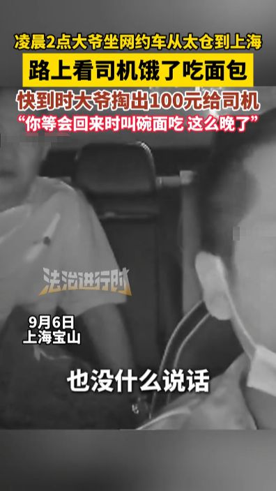 信息来源:《凌晨2点大爷坐网约车从太仓到上海,路上看司机饿了吃面包,快到时大爷掏出100元给司机》法治进行时