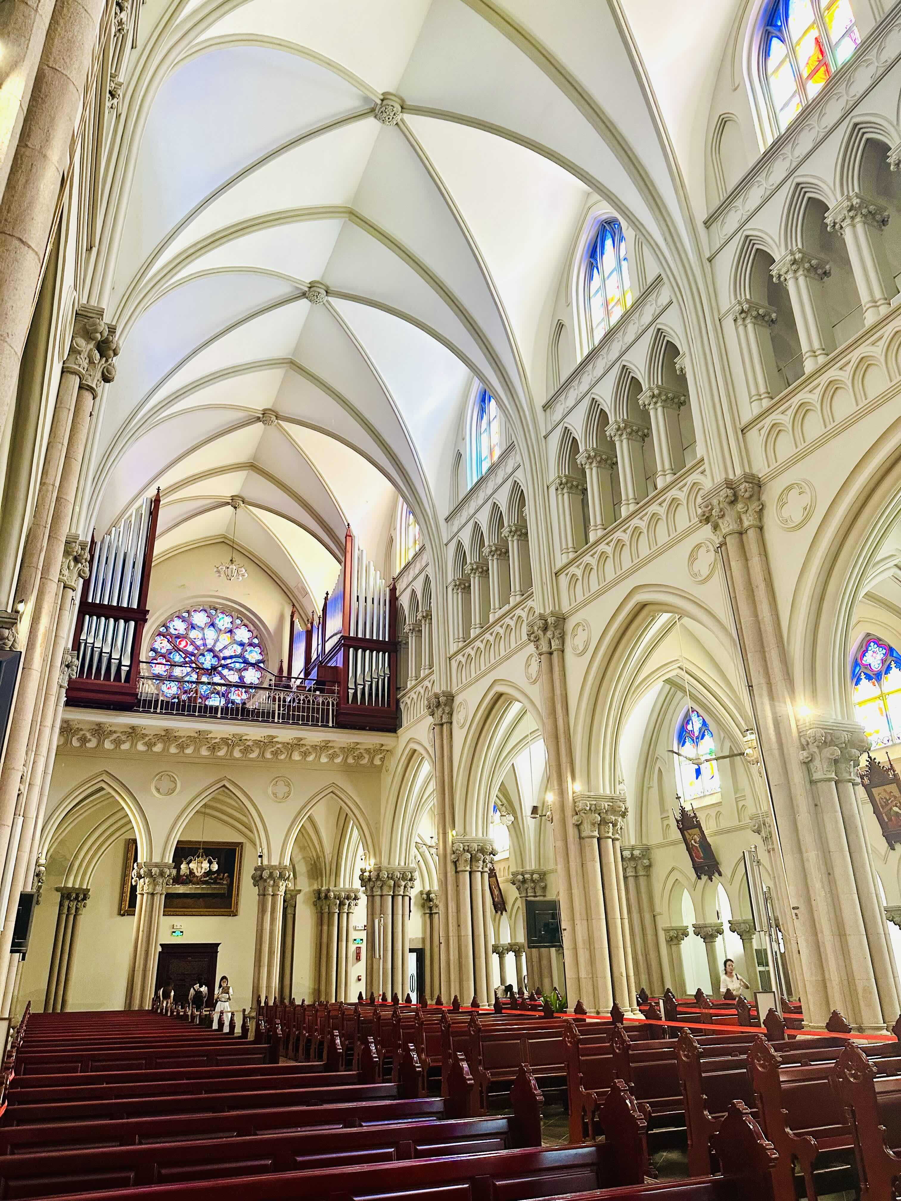 哥特式的穹顶之下,是光与影的圣殿。斑斓的光柱,是人间与天堂最温柔的连接。这里是心灵的避风港,也是信仰的灯塔。时间仿佛突然慢了下来,每一块彩绘玻璃,都封印着一个神圣的故事,等待阳光来唤醒。总要在某个午后,来徐家汇教堂坐一坐吧,看光与影在此共舞,谱写一首宁静的诗。