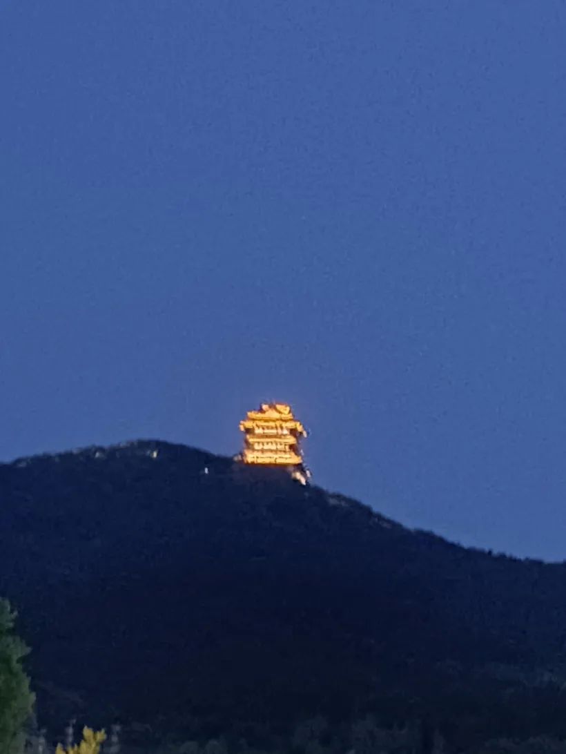 山顶有一仁皇阁,有七层楼加上面一圆尖顶,山高阁也不矮,所以在小城内很多地方都能望到仁皇山,望到仁皇阁,特别是夜晚天黑时,山顶仁皇阁内灯火通明,远远向上望去,就如金壁辉煌的天上皇宫,成了小城的一个地标特色。山腰处有一古来名寺,名曰仁皇护国禅寺,历朝历代屡次毁于战火,目前正在大规模重建,大殿已完成,据说唐代盛世时,香客络绎不绝。