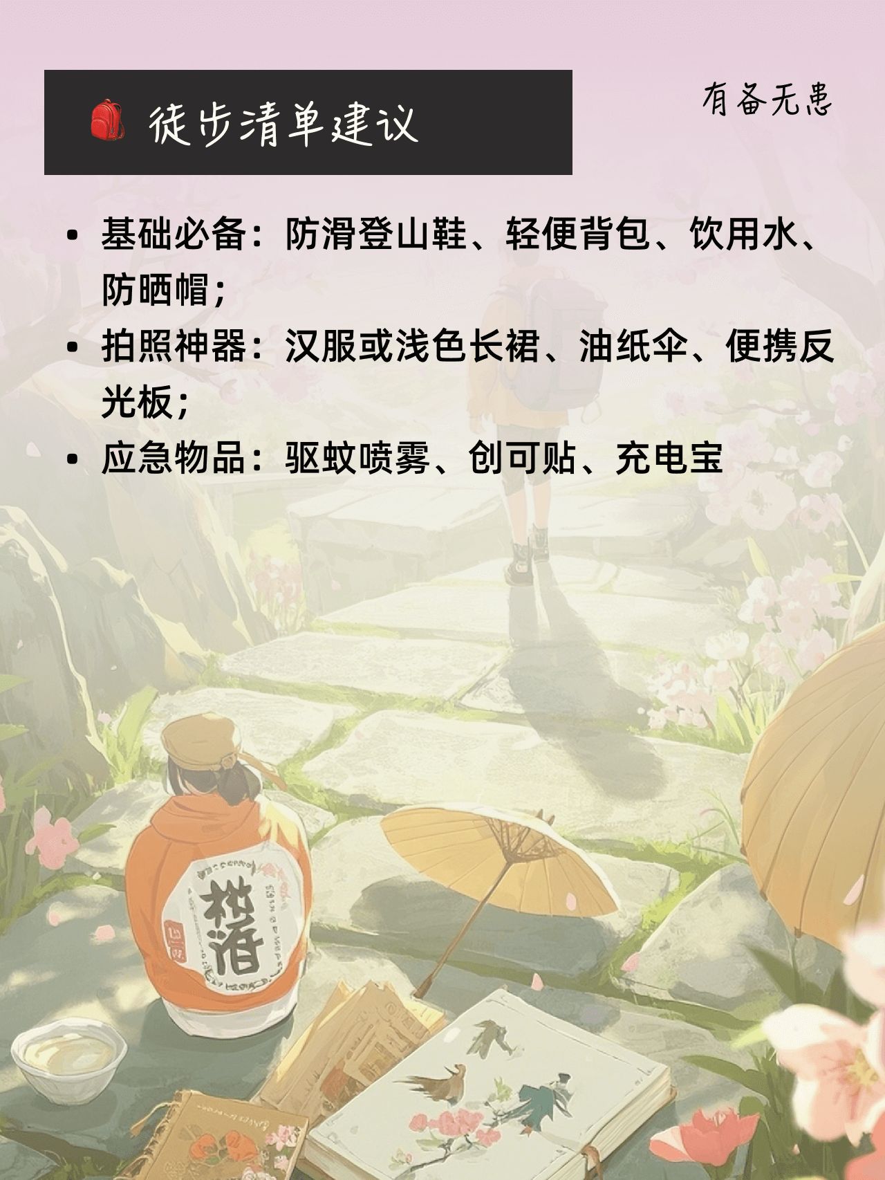 拍照神器:汉服或浅色长裙、油纸伞、便携反光板;