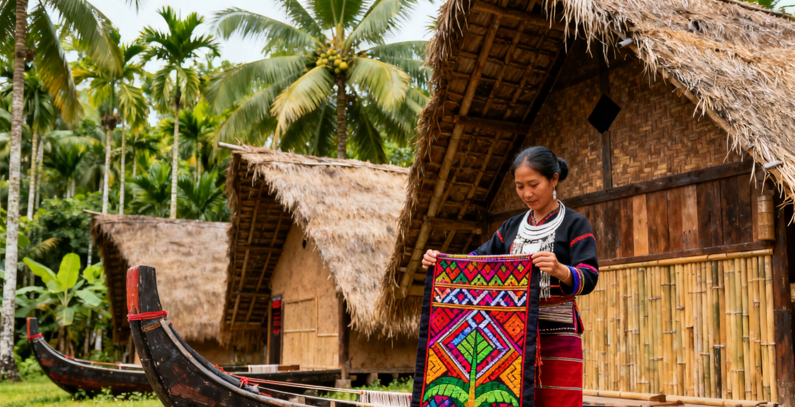 这里同住着黎族和苗族同胞。若是赶上“三月三”,能听到山歌对唱、看到竹竿舞,甚至尝到五色饭和山兰酒。一位黎族阿姐告诉我:“我们的文化,就藏在山歌和织锦里。”她手里的黎锦,图案繁复,一针一线都是故事。