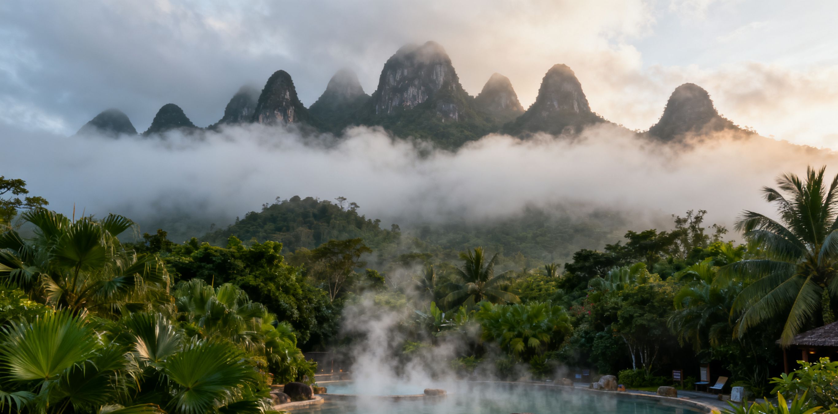 保亭的七仙岭名气不小,但真正爬过的人不多。热带雨林里藤蔓缠绕,沿途能看到瀑布、听到鸟鸣,偶尔还有猴子从头顶跳过。爬山累了?山脚下就是野溪温泉!一边泡着天然热水,一边看云雾绕在山腰,那种惬意,文字都显得苍白,很难找到合适的文字来描述!