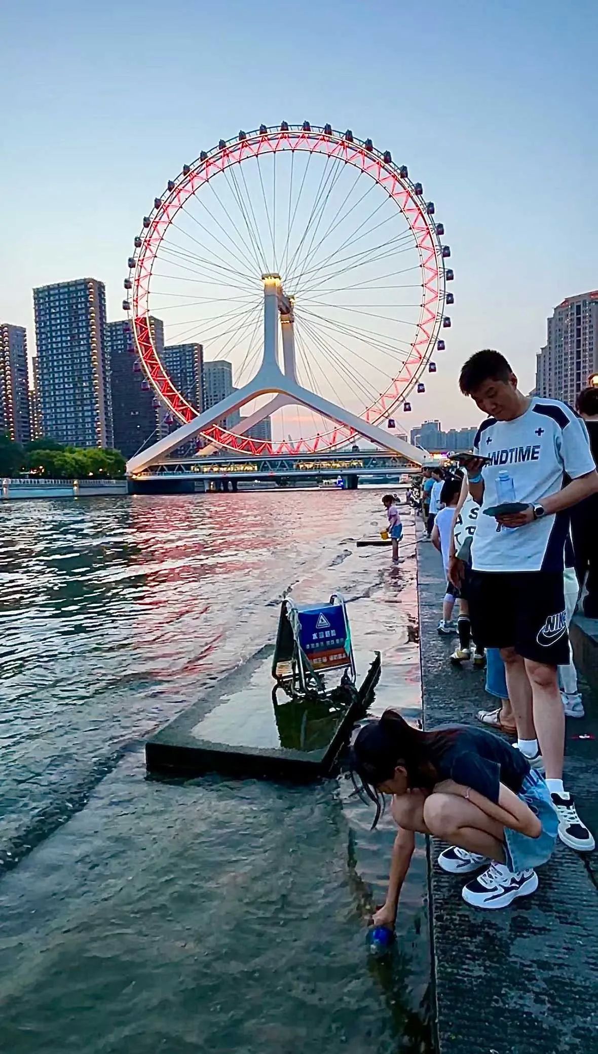 无论河边、海边当人如潮涌的时候总给我不一样的心动,顺手拍了一张,可以写成故事的“海河边”。