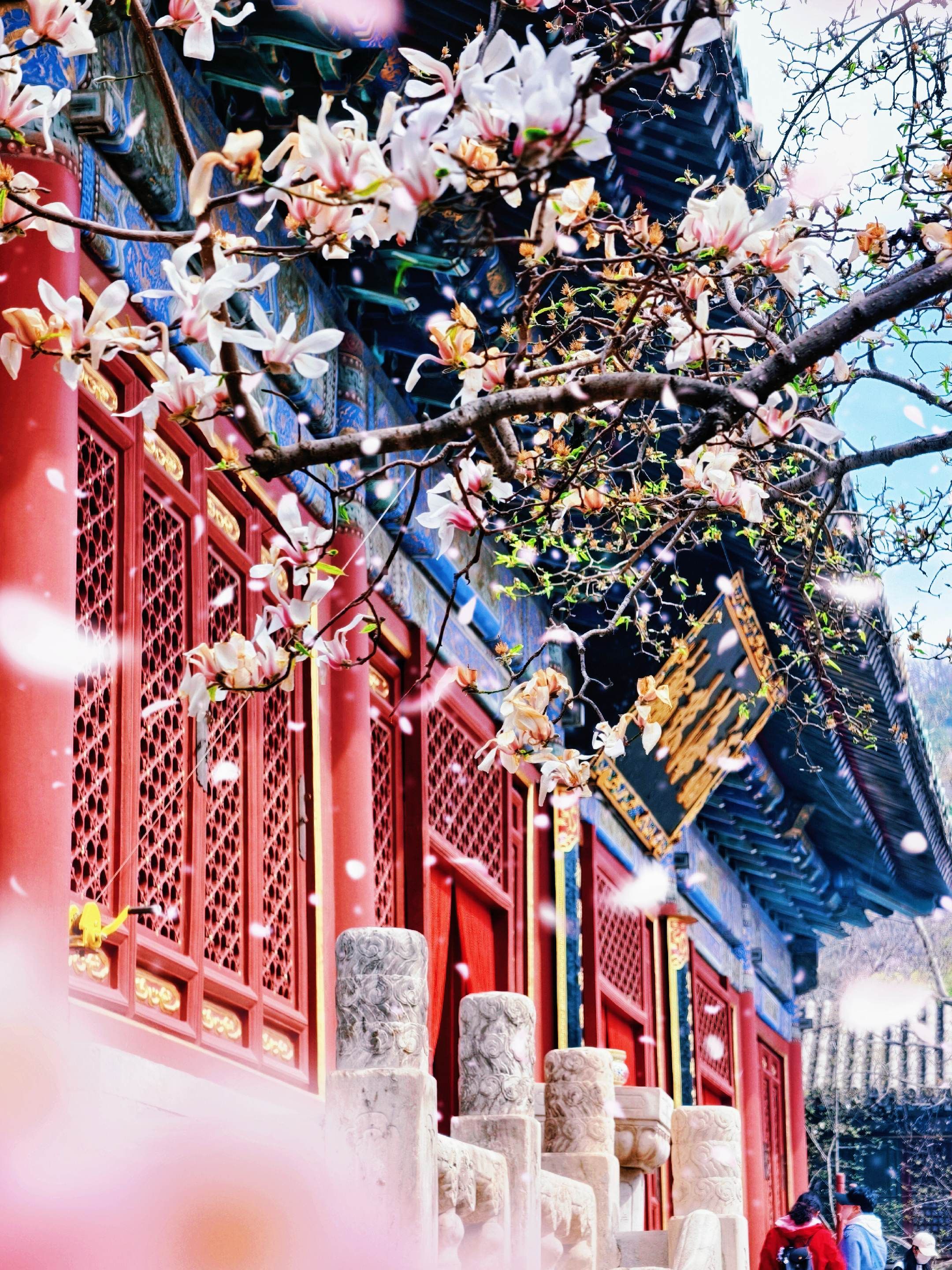 潭柘寺的玉兰花太美了!每年3月下旬到4月中旬,这里的玉兰迎来最佳花期,洁白如玉或淡淡紫粉的花朵,缀满百年古树,与千年古刹交相辉映,美得摄人心魄。
